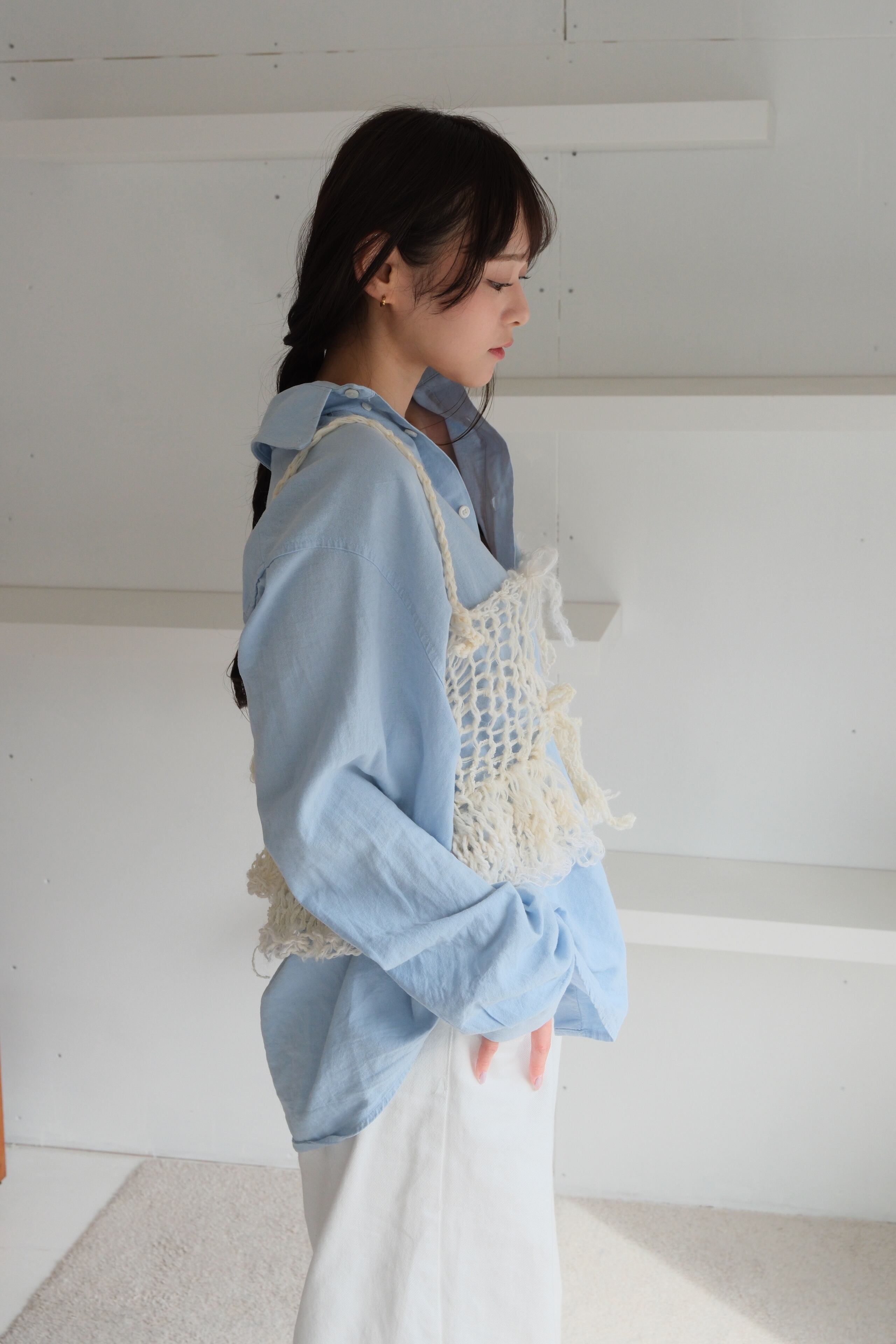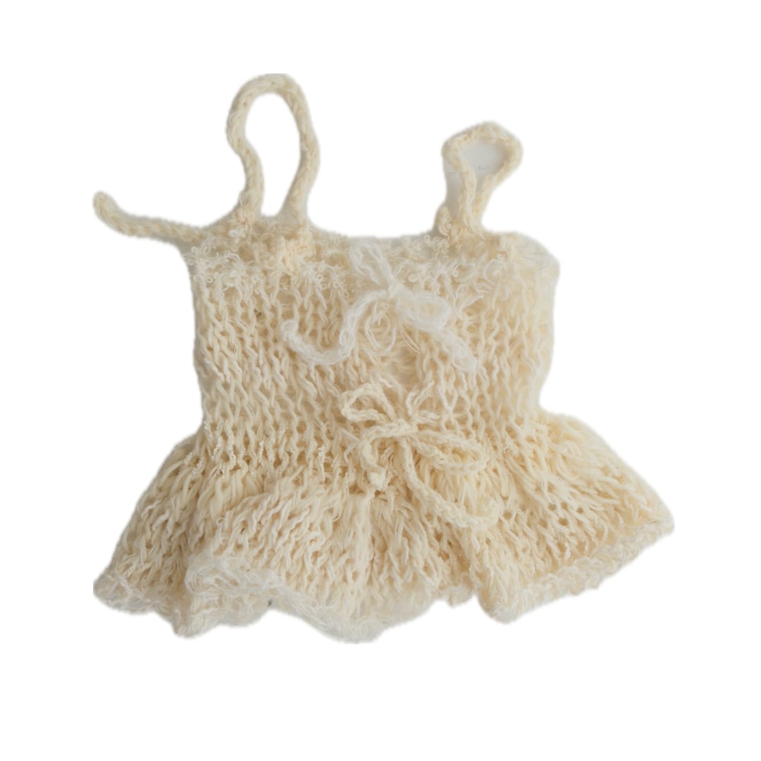 ・商品ごとに使用している毛糸が異なり、毛糸によっては着用中に肩紐や襟周りが伸びることがあります。素材の特徴によるもので、商品不良としての対応はしかねます。