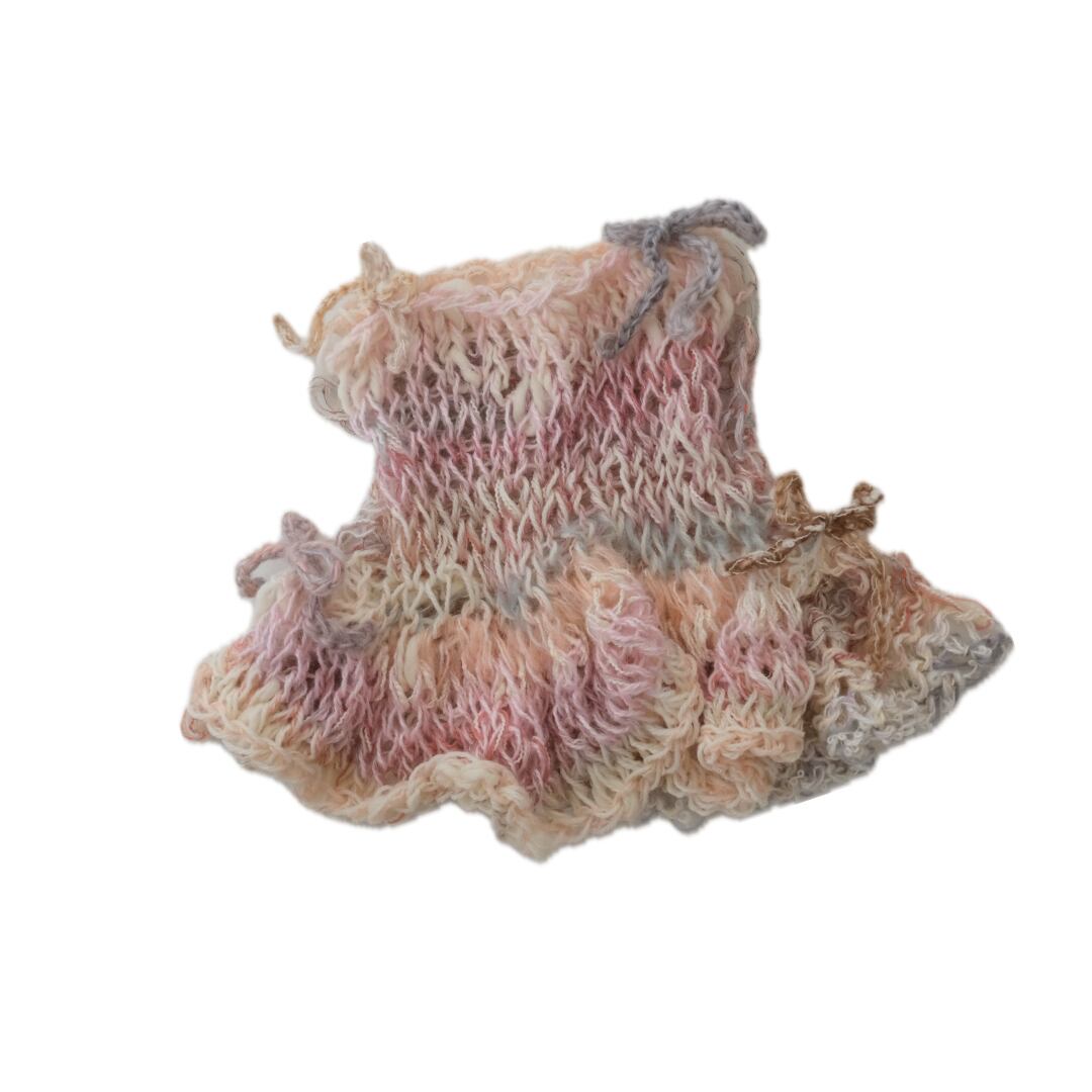 ・商品ごとに使用している毛糸が異なり、毛糸によっては着用中に肩紐や襟周りが伸びることがあります。素材の特徴によるもので、商品不良としての対応はしかねます。