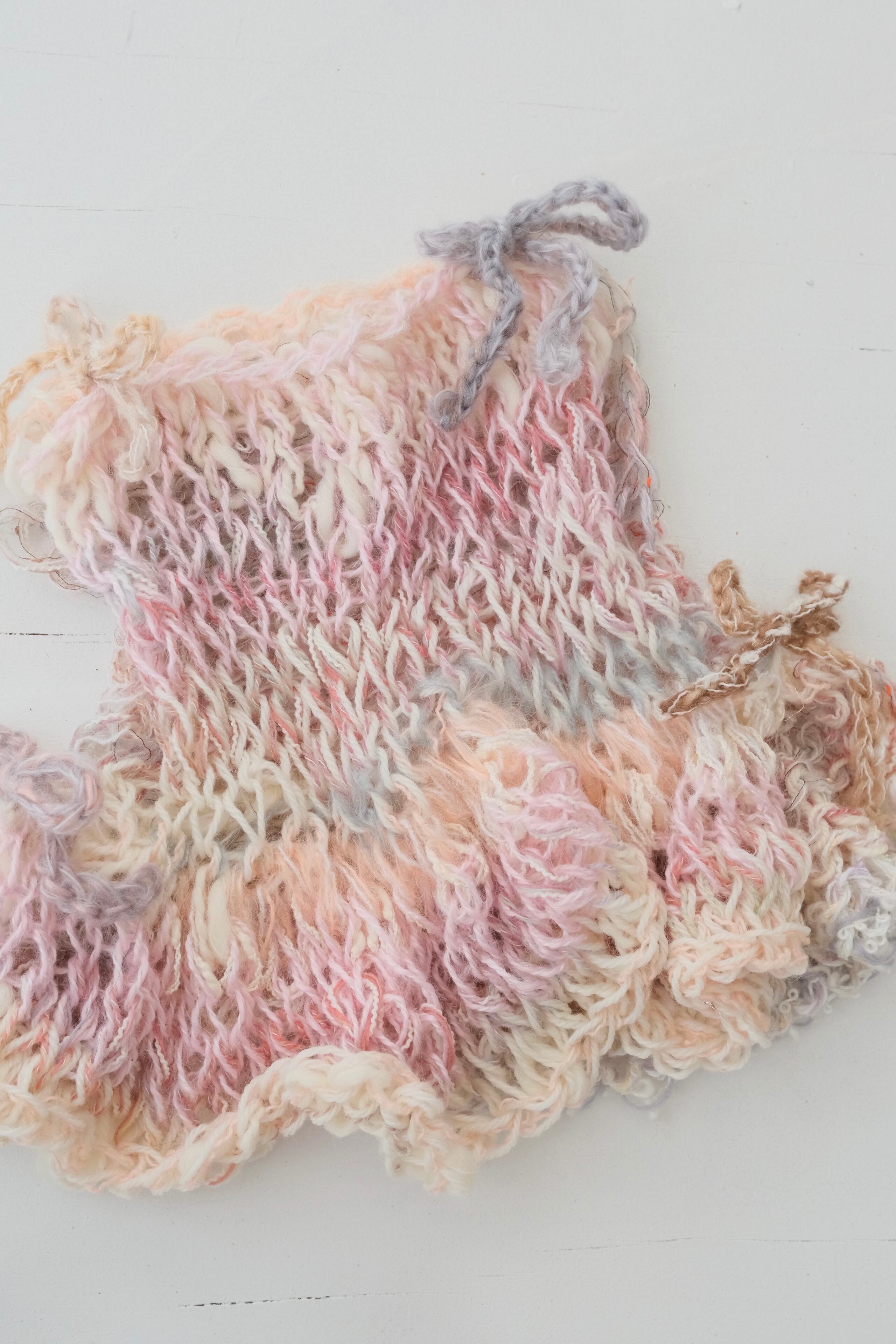 •商品は全てハンドメイドで、ざっくりとした手編みの質感を楽しむ商品です。工場製品のように端正な作りではありません。ご理解の上ご購入ください。正確なつくりをお求めの方はご遠慮ください。