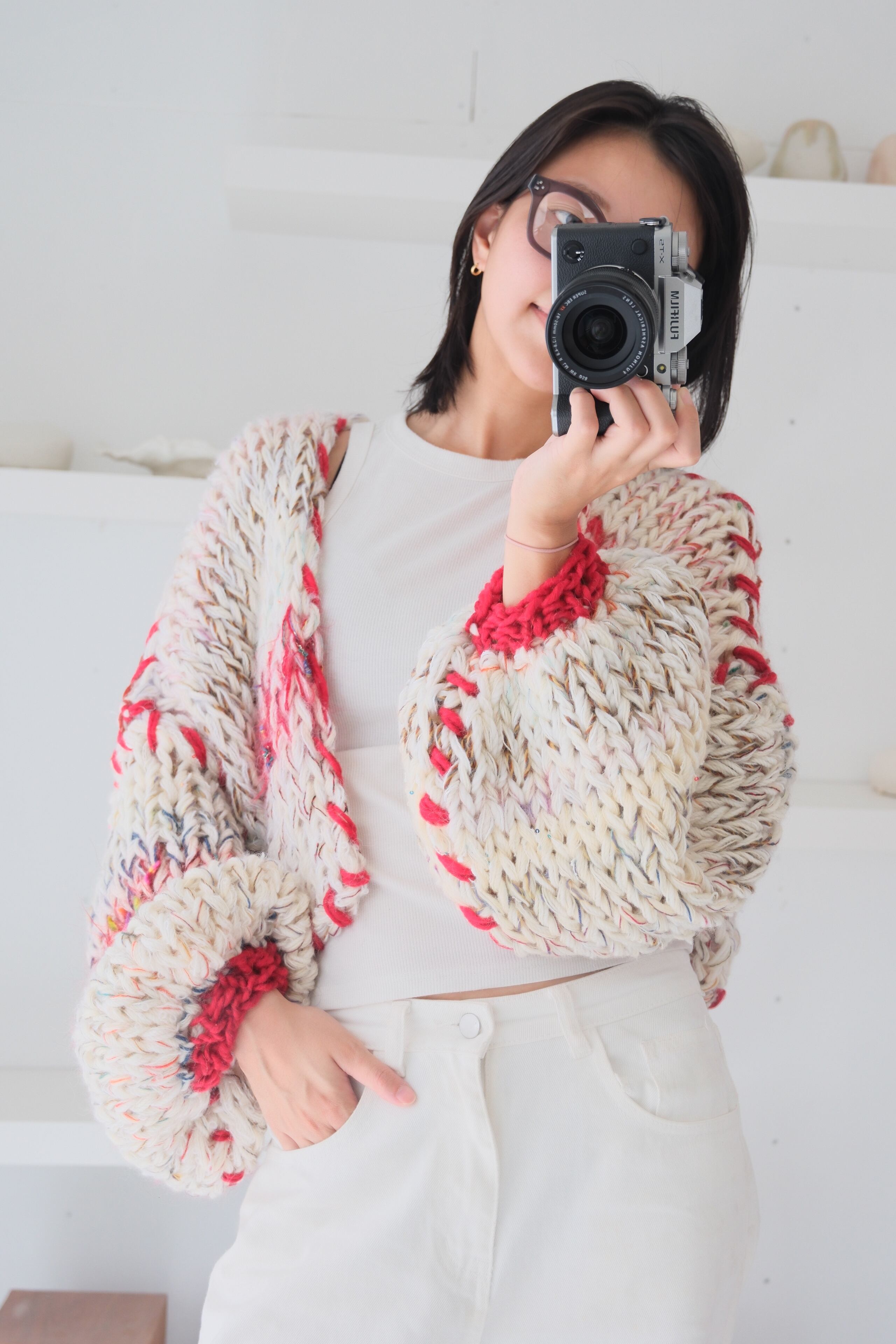 – Since we repurpose second hand yarn, we are not able to provide exact information about the materials. Please note that because of this, some dry cleaning stores may reject taking in knitwear you have purchased from amuamu.