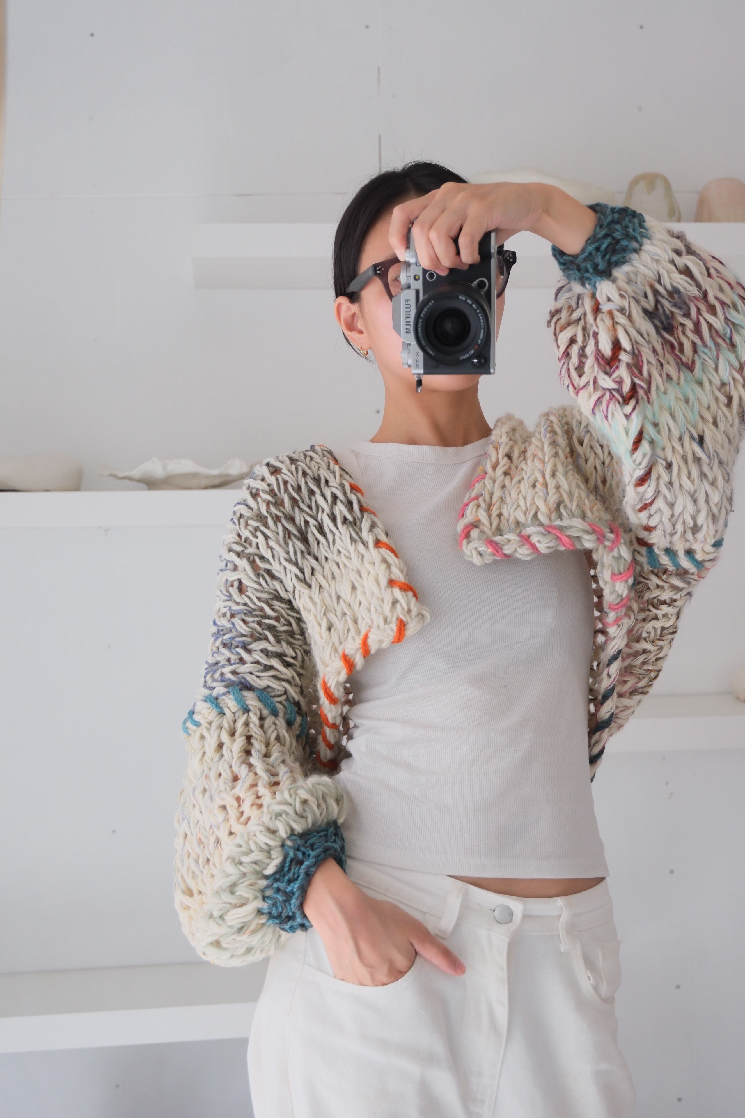 – Since we repurpose second hand yarn, we are not able to provide exact information about the materials. Please note that because of this, some dry cleaning stores may reject taking in knitwear you have purchased from amuamu.