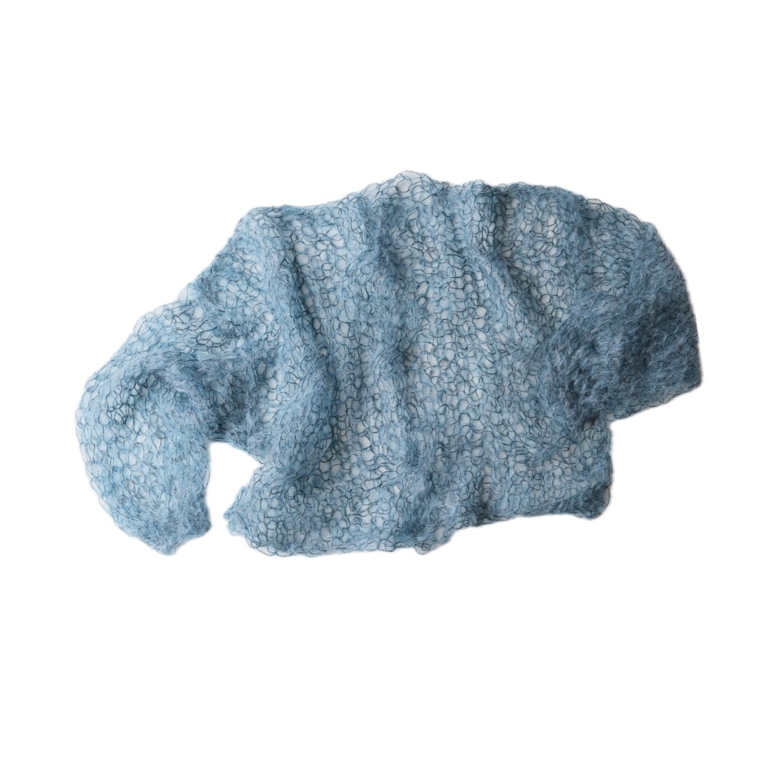 An airy, cosy layer of comfort that hugs your skin — every single piece is uniquely handknitted, using plenty of high quality second hand wool and mohair yarns.