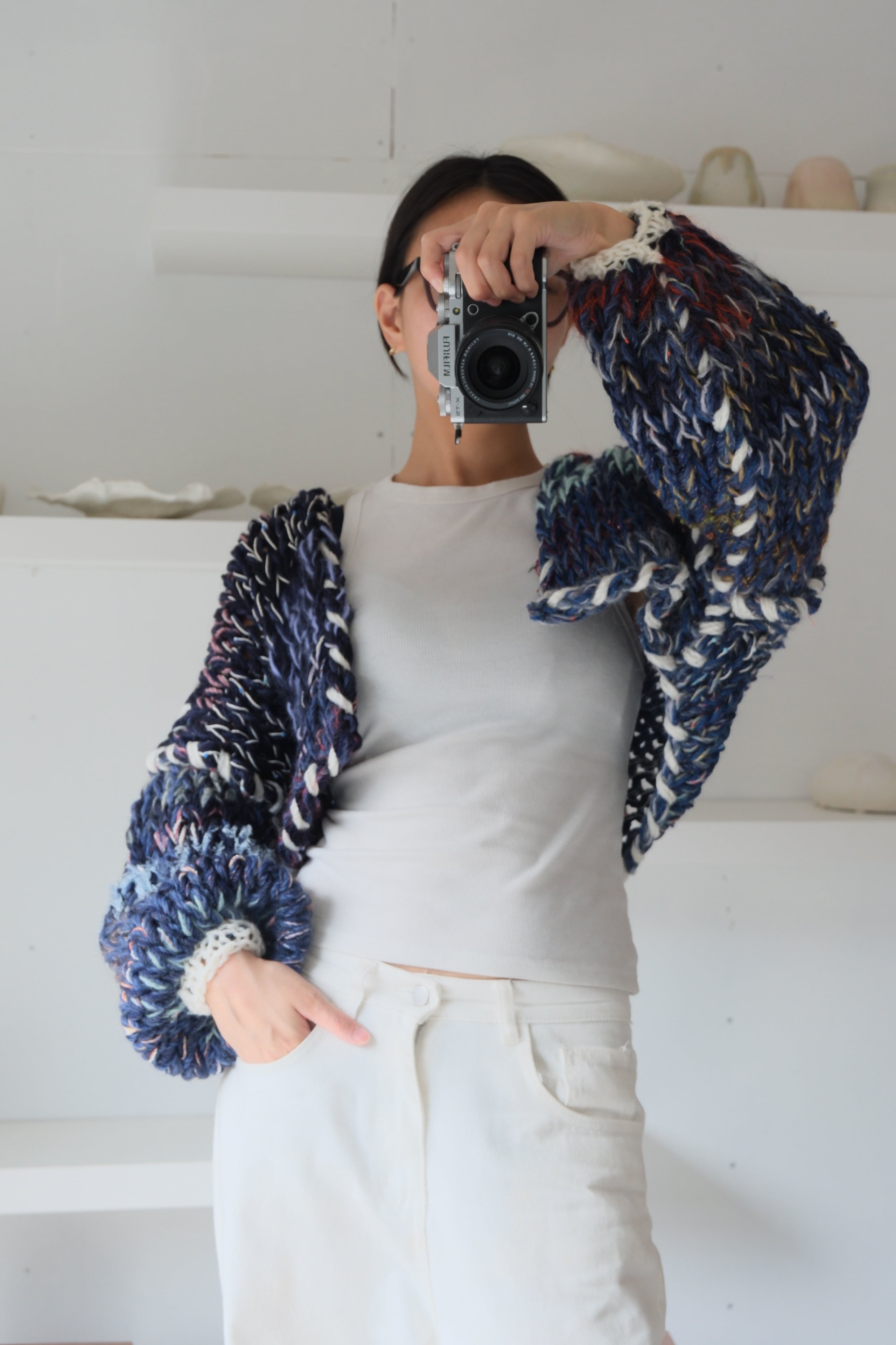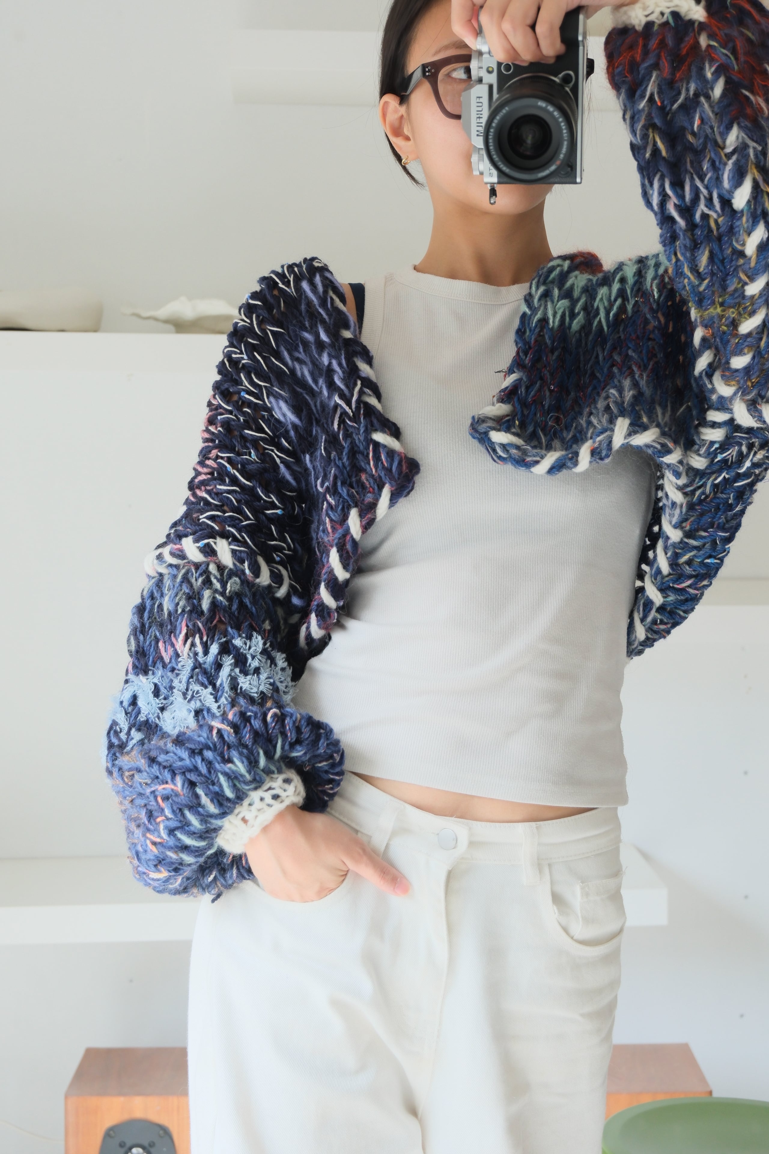 – Since we repurpose second hand yarn, we are not able to provide exact information about the materials. Please note that because of this, some dry cleaning stores may reject taking in knitwear you have purchased from amuamu.