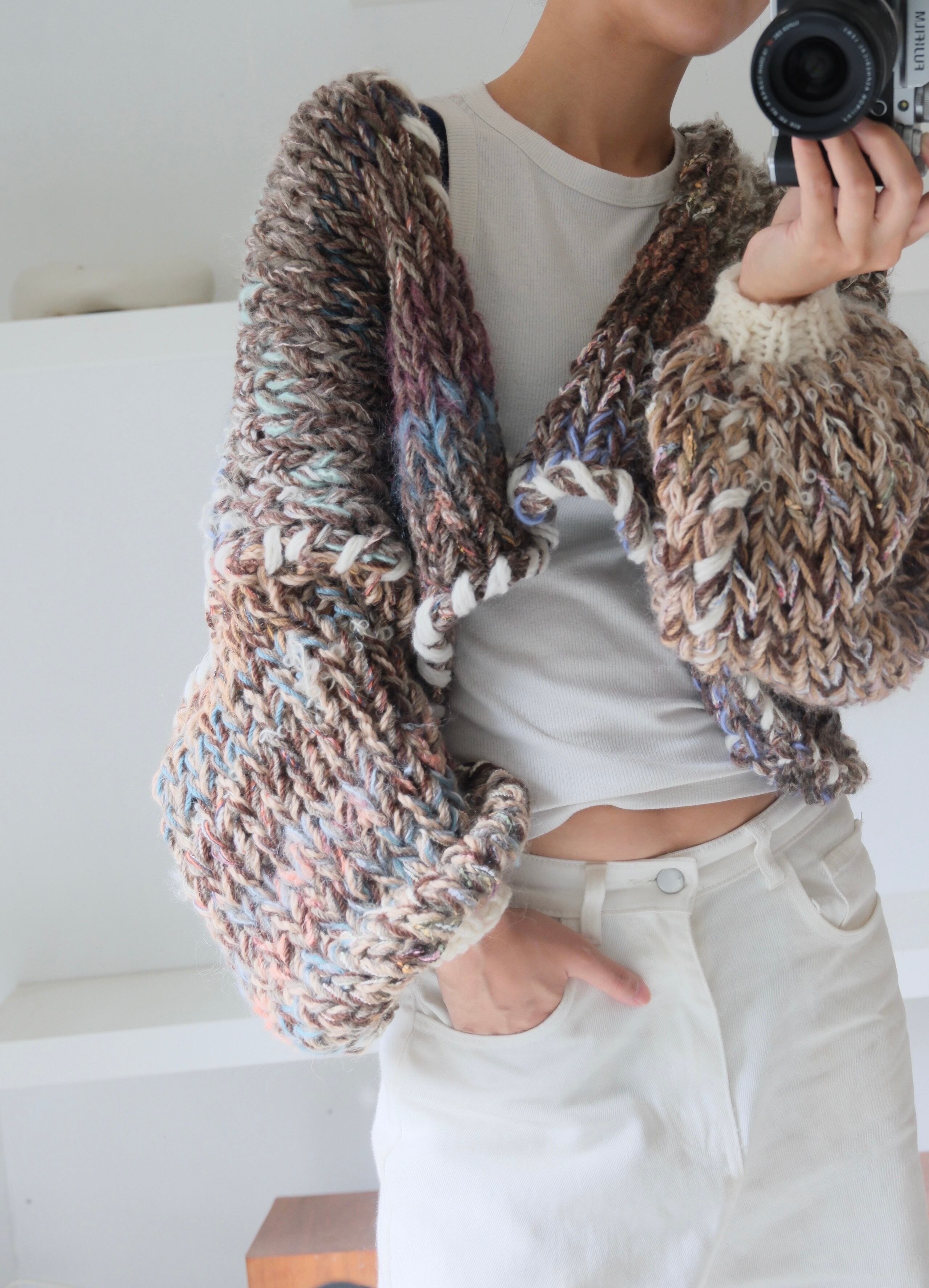 stitched mix yarn cardigan