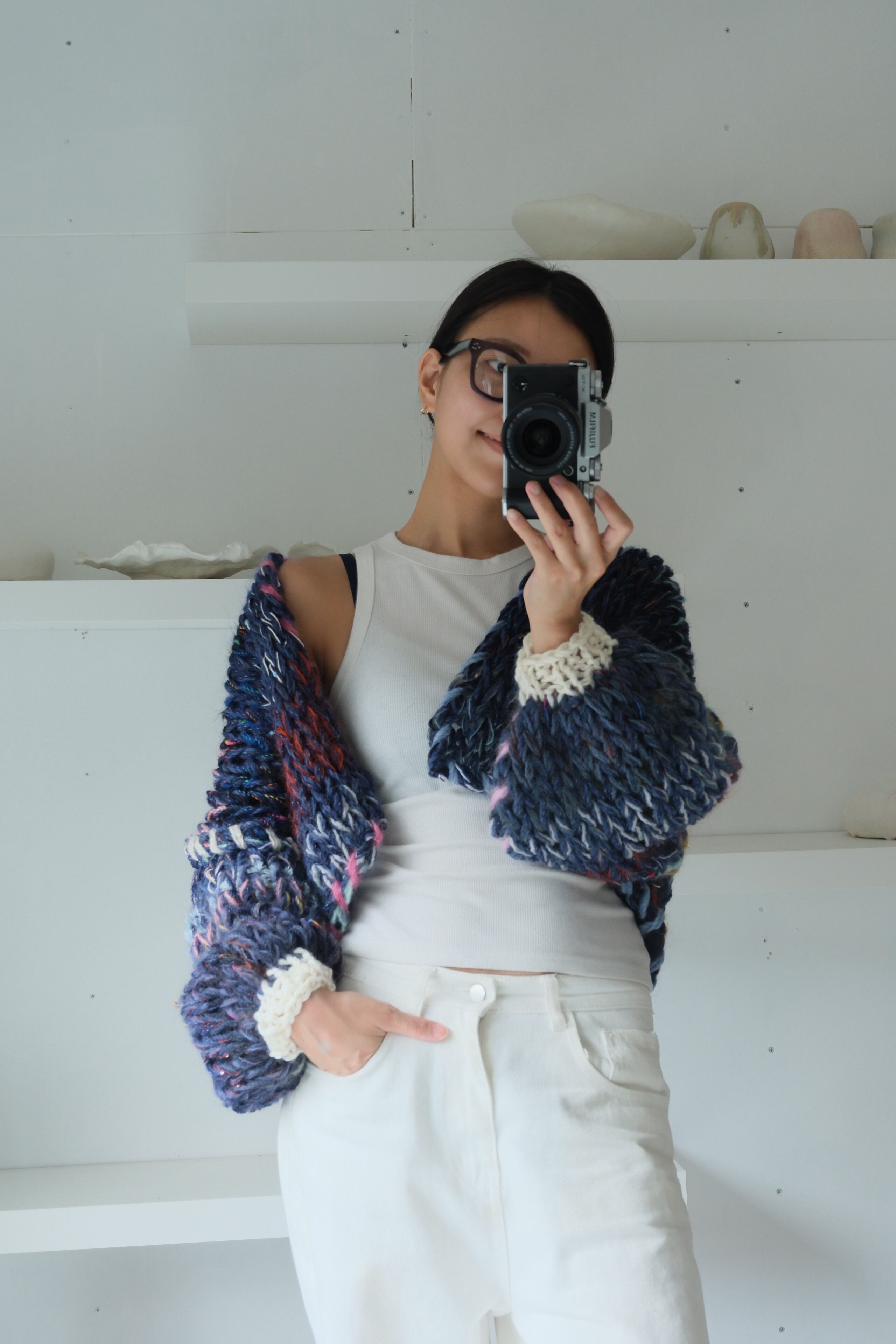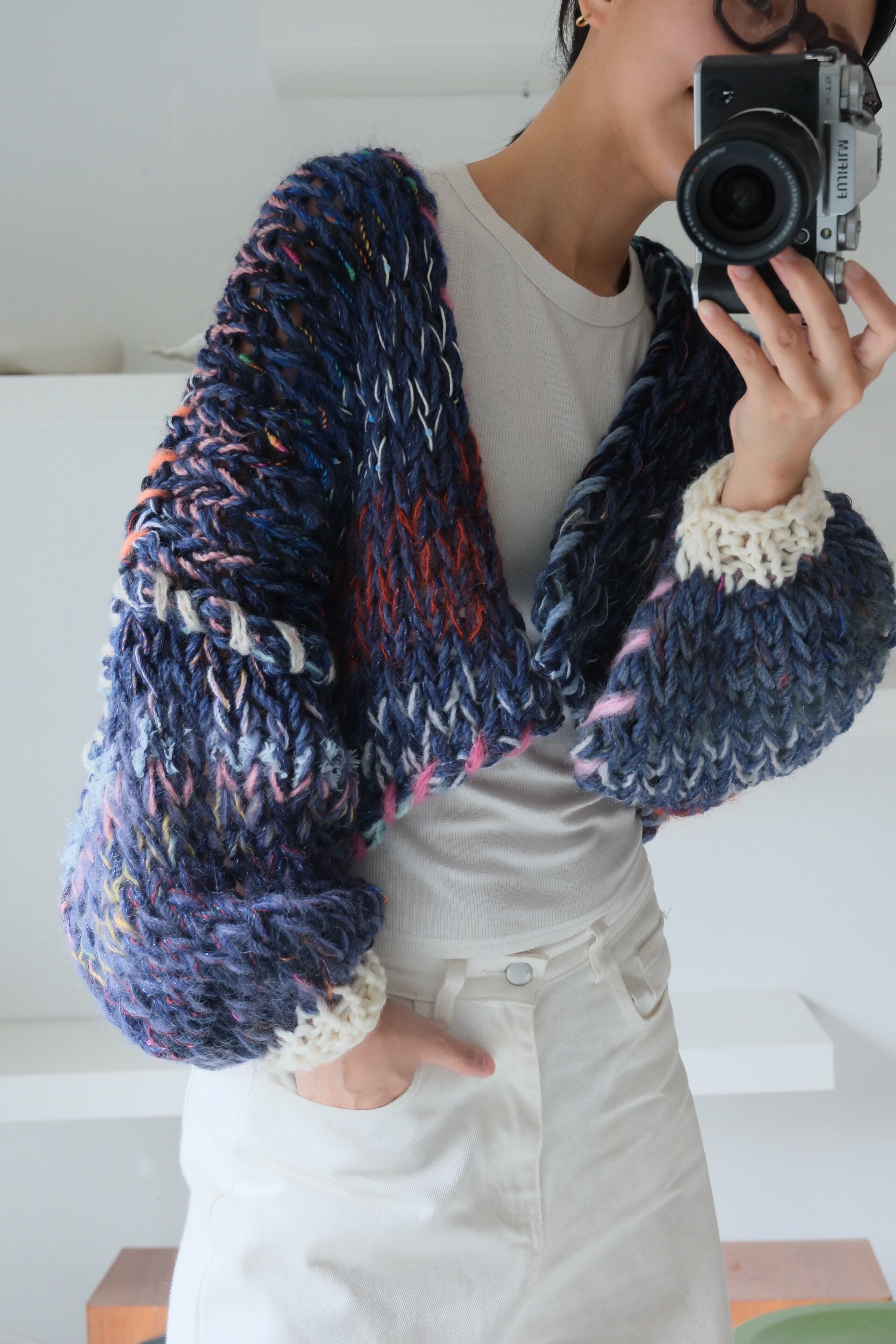 – Since we repurpose second hand yarn, we are not able to provide exact information about the materials. Please note that because of this, some dry cleaning stores may reject taking in knitwear you have purchased from amuamu.
