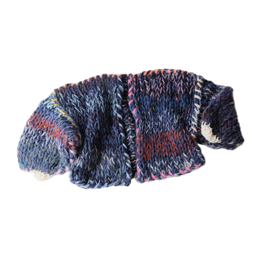 一期一会のセカンドハンド毛糸を使用した、全て一点物の手編みセーター。