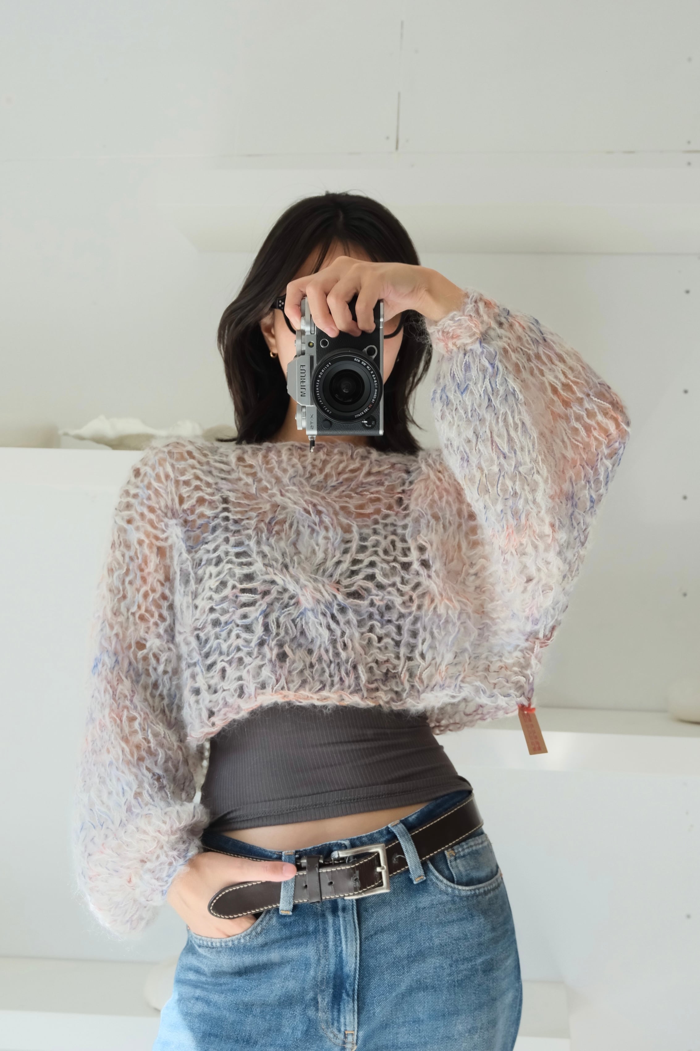 An airy, cosy layer of comfort that hugs your skin — every single piece is uniquely handknitted, using plenty of high quality second hand wool and mohair yarns.