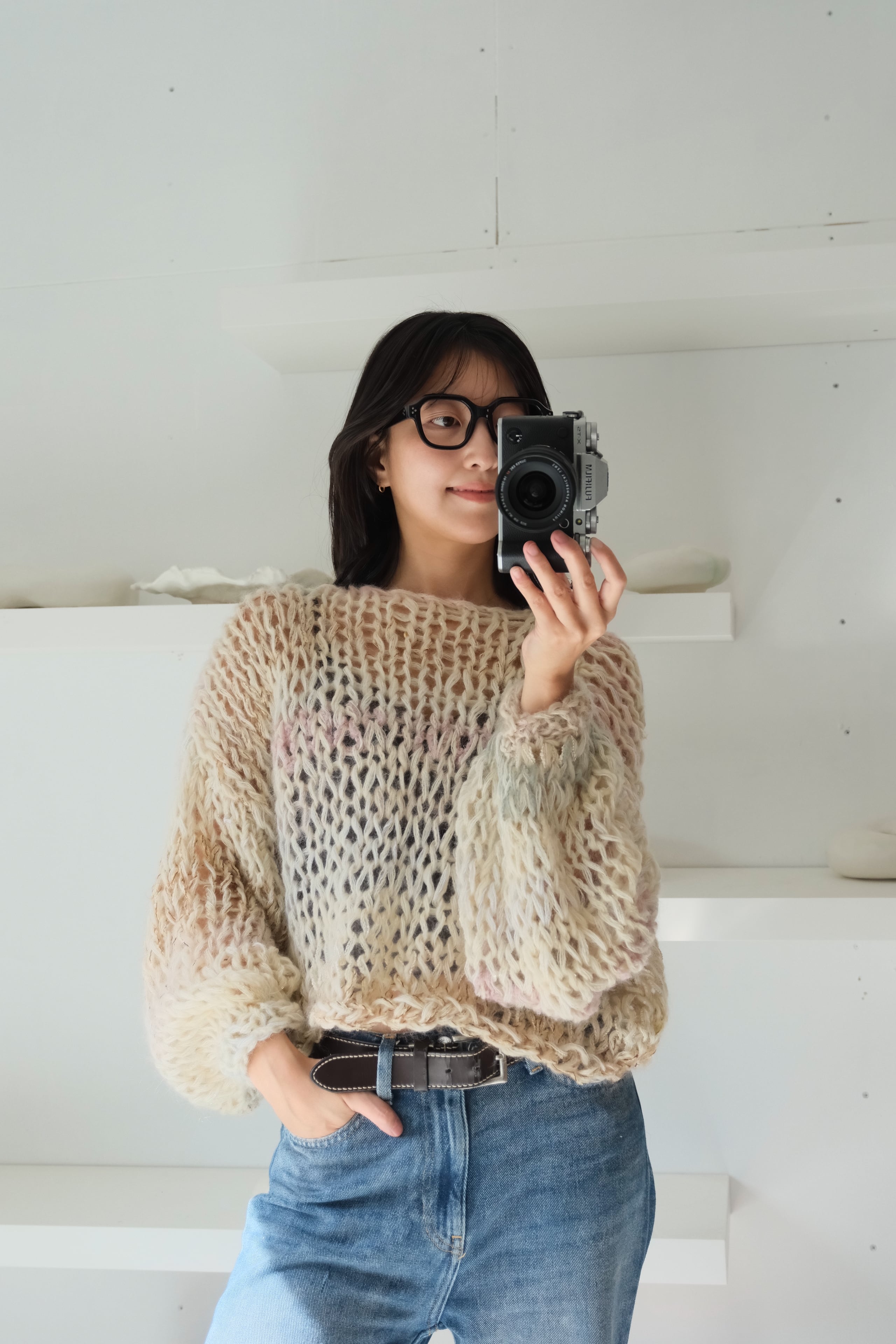An airy, cosy layer of comfort that hugs your skin — every single piece is uniquely handknitted, using plenty of high quality second hand wool and mohair yarns.
