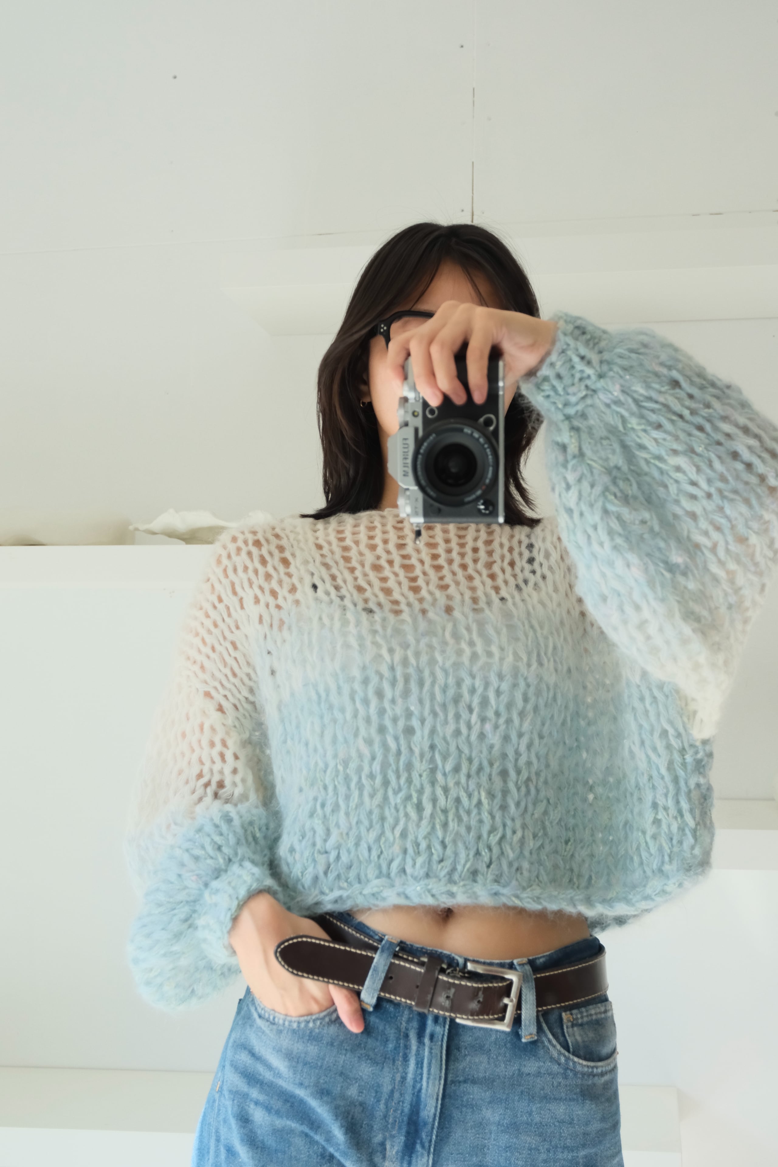 An airy, cosy layer of comfort that hugs your skin — every single piece is uniquely handknitted, using plenty of high quality second hand wool and mohair yarns.
