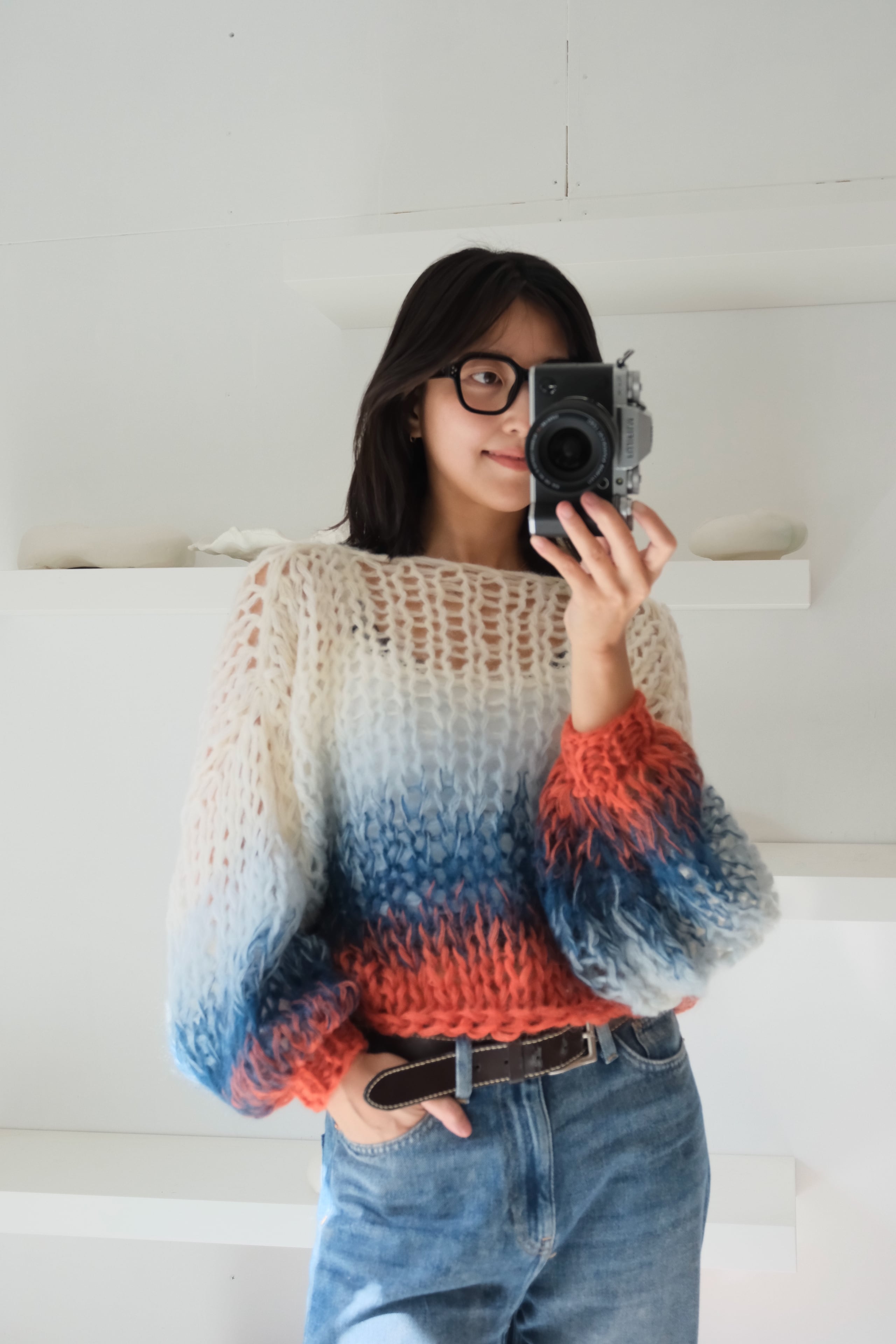 An airy, cosy layer of comfort that hugs your skin — every single piece is uniquely handknitted, using plenty of high quality second hand wool and mohair yarns.