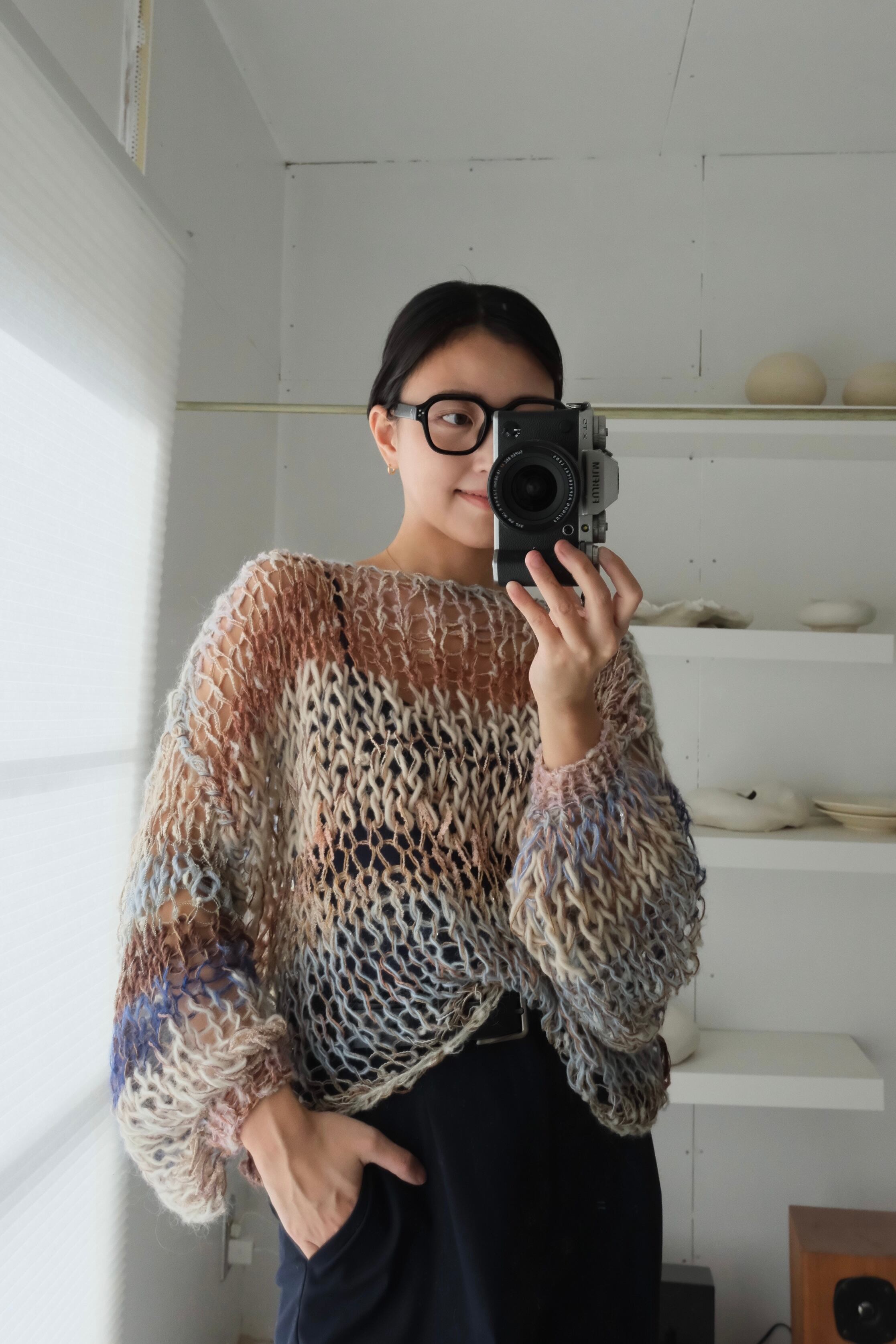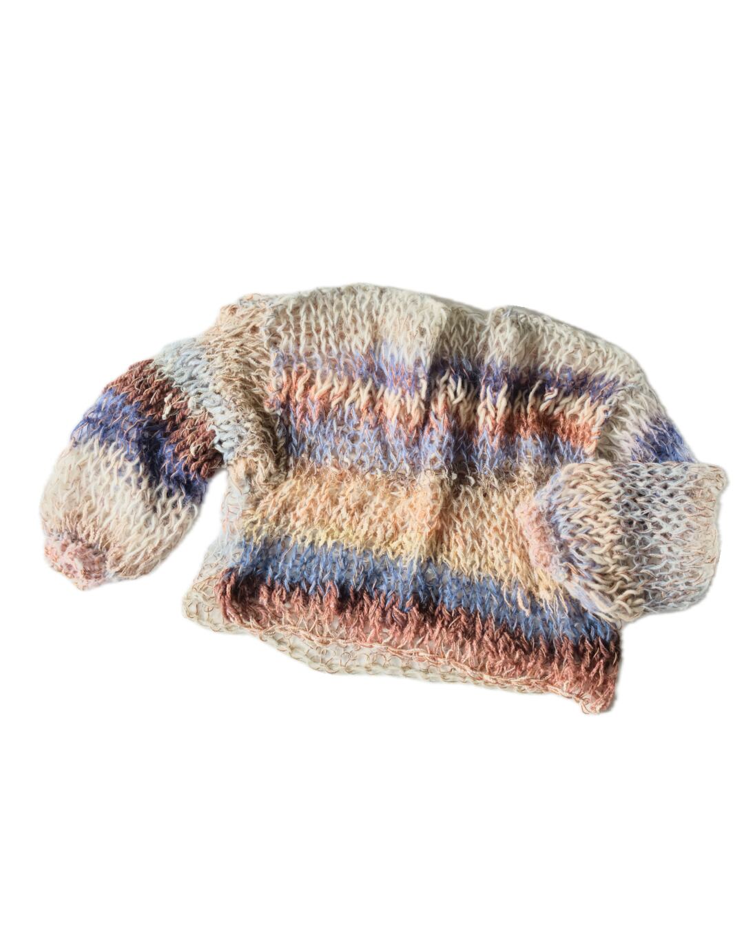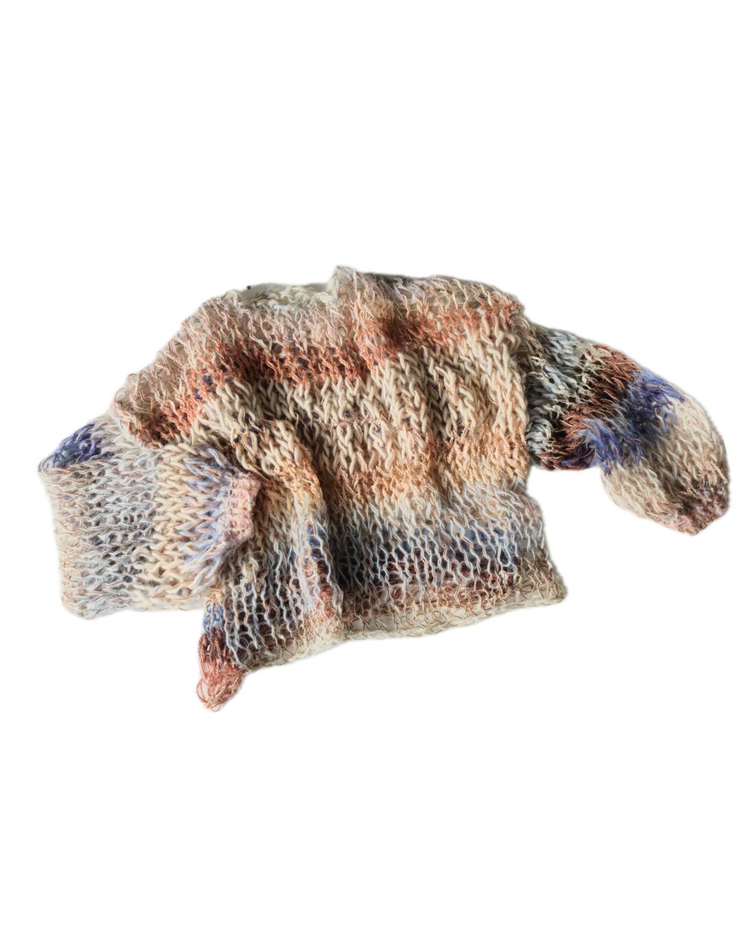 An airy, cosy layer of comfort that hugs your skin — every single piece is uniquely handknitted, using plenty of high quality second hand wool and mohair yarns.