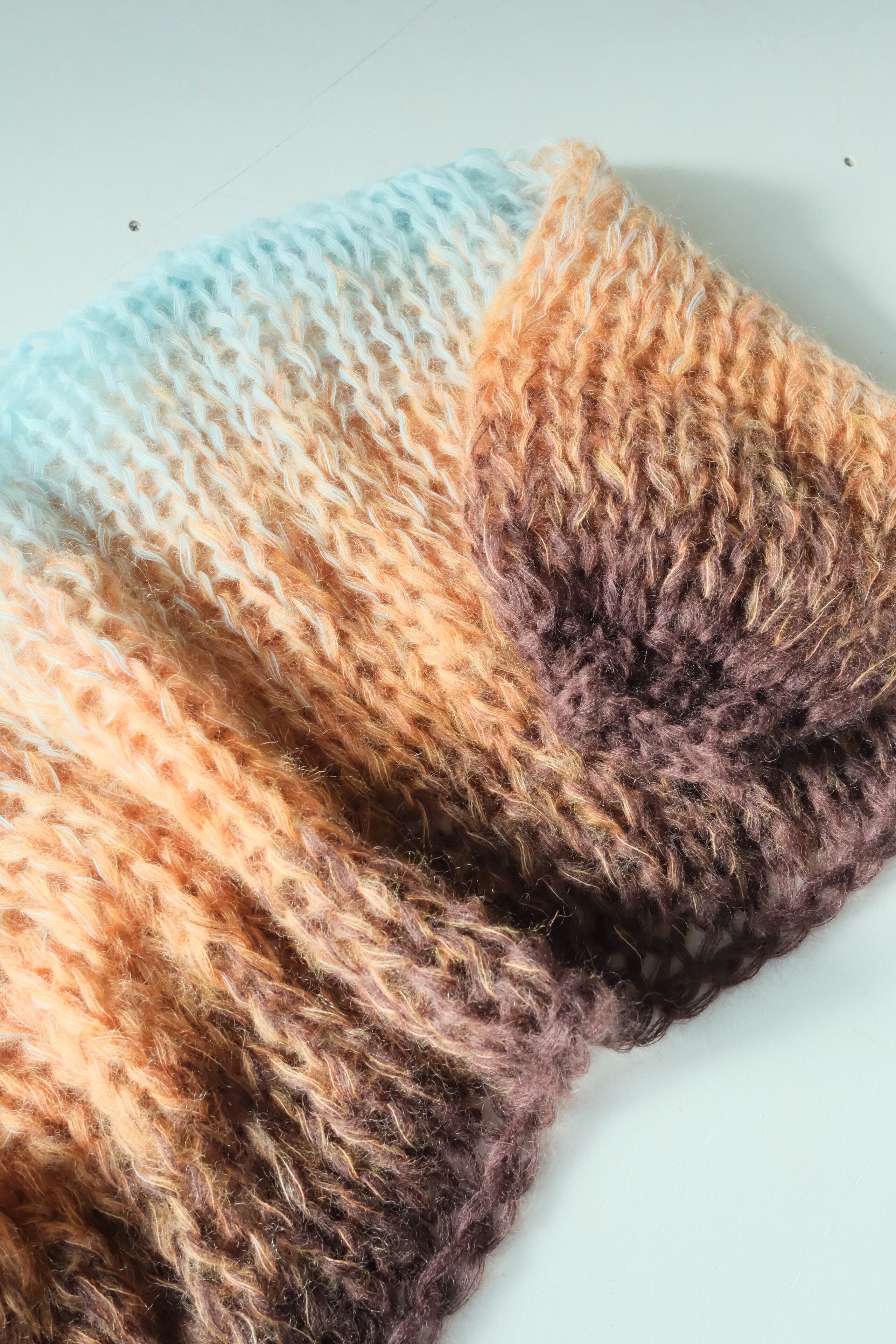 An airy, cosy layer of comfort that hugs your skin — every single piece is uniquely handknitted, using plenty of high quality second hand wool and mohair yarns.