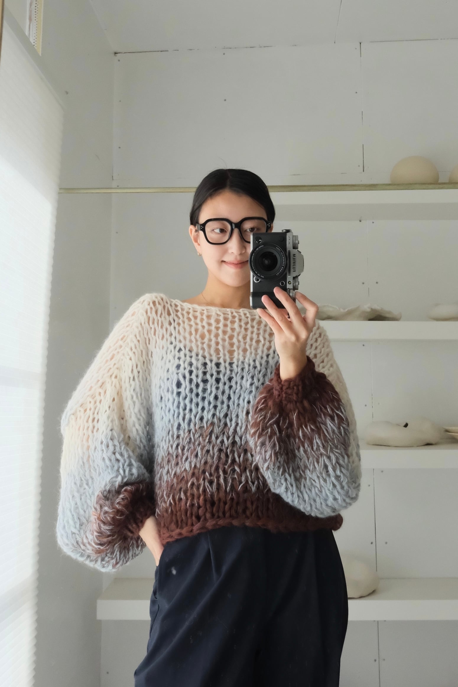An airy, cosy layer of comfort that hugs your skin — every single piece is uniquely handknitted, using plenty of high quality second hand wool and mohair yarns.