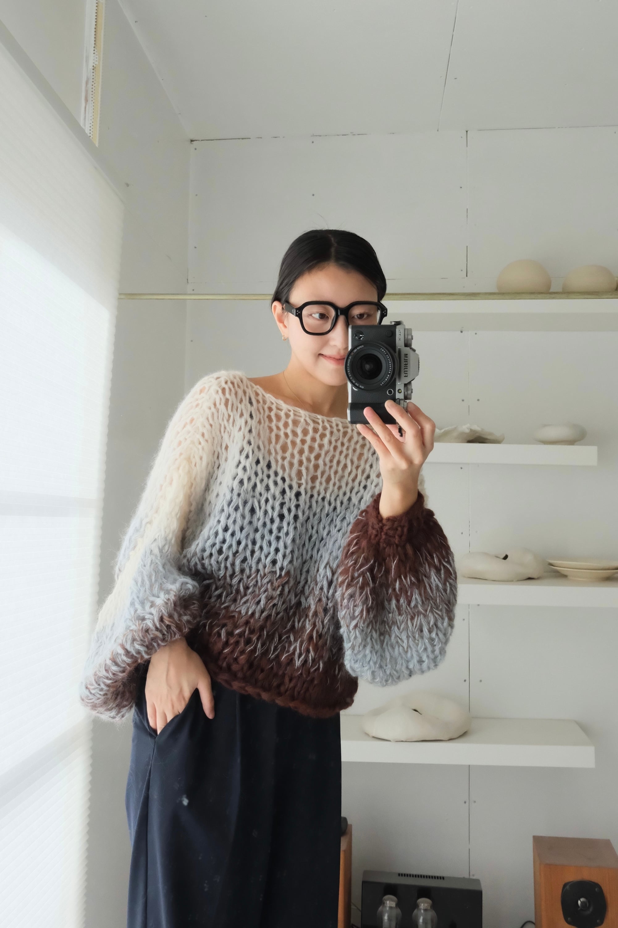•セカンドハンドの毛糸を混ぜて使用しているため正確な品質表示が出せませんが、主に60~100%モヘア/ウール、その他アンゴラ、綿、シルク、アクリル、ポリエステルなどです。