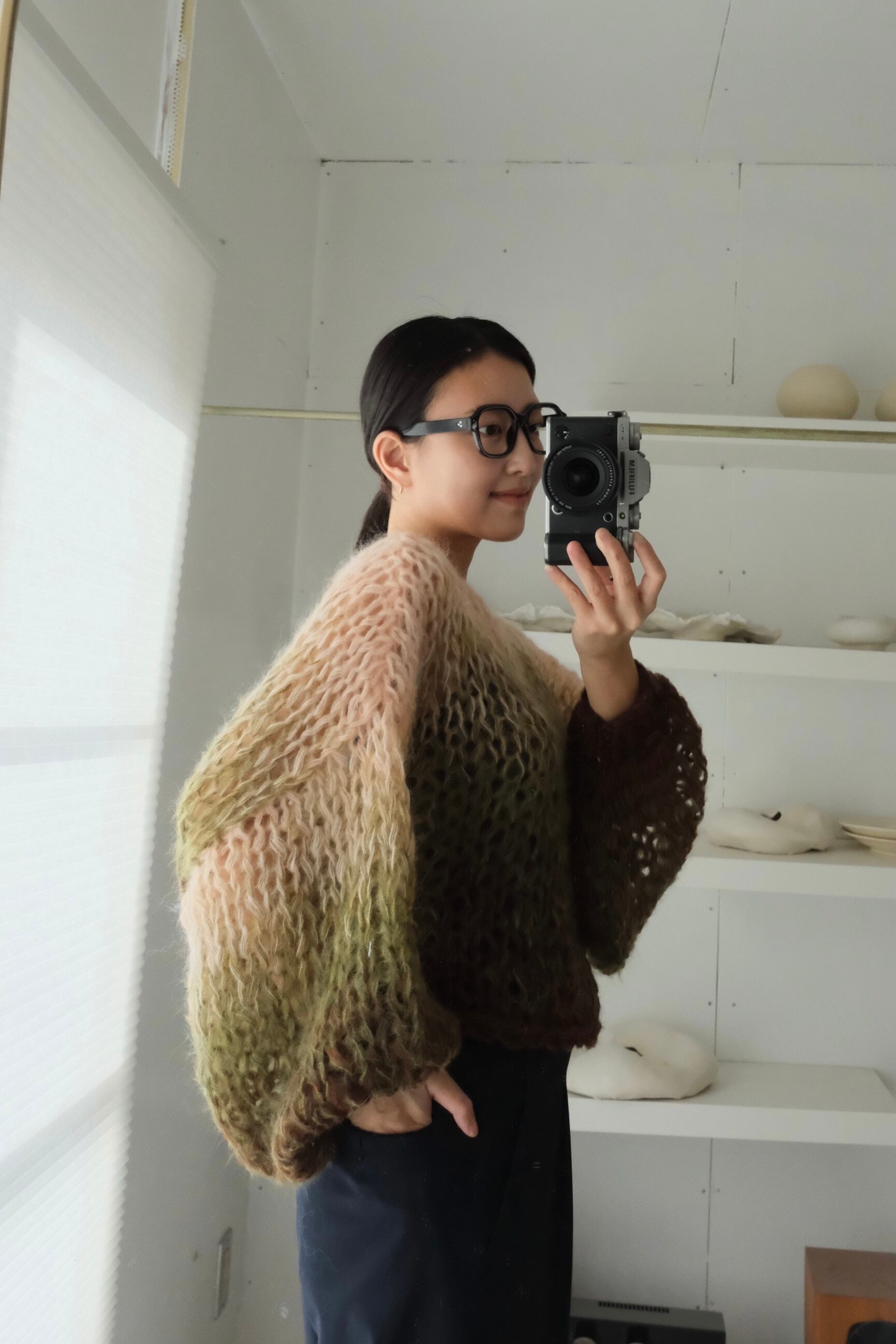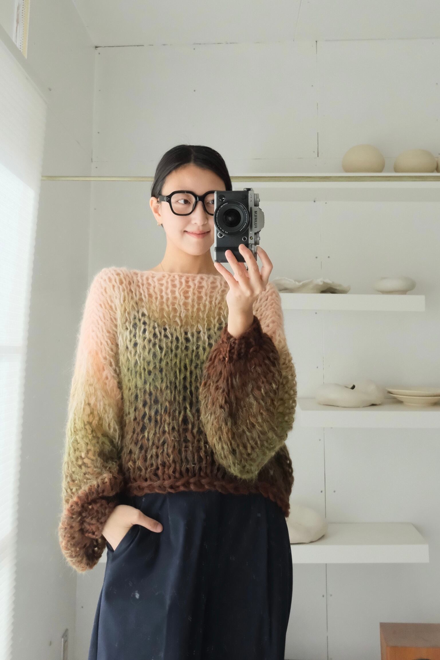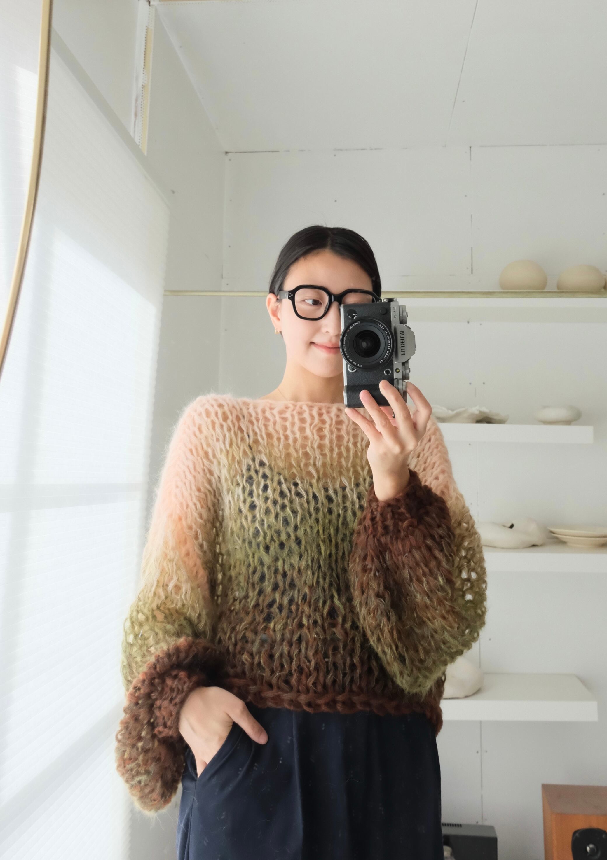 シルクタッチの柔らかなモヘアで編んだ、軽くて暖かなセーター