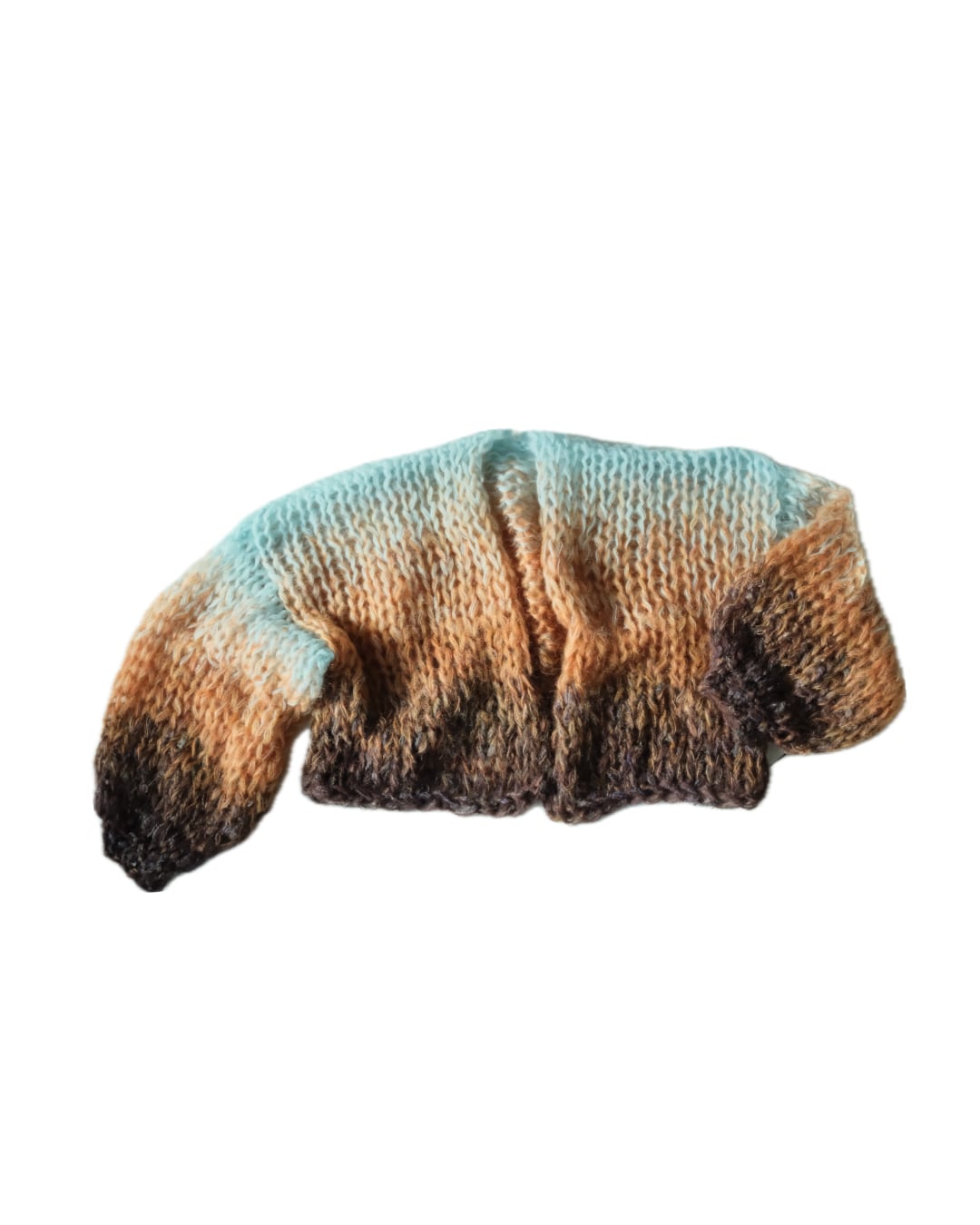 An airy, cosy layer of comfort that hugs your skin — every single piece is uniquely handknitted, using plenty of high quality second hand wool and mohair yarns.
