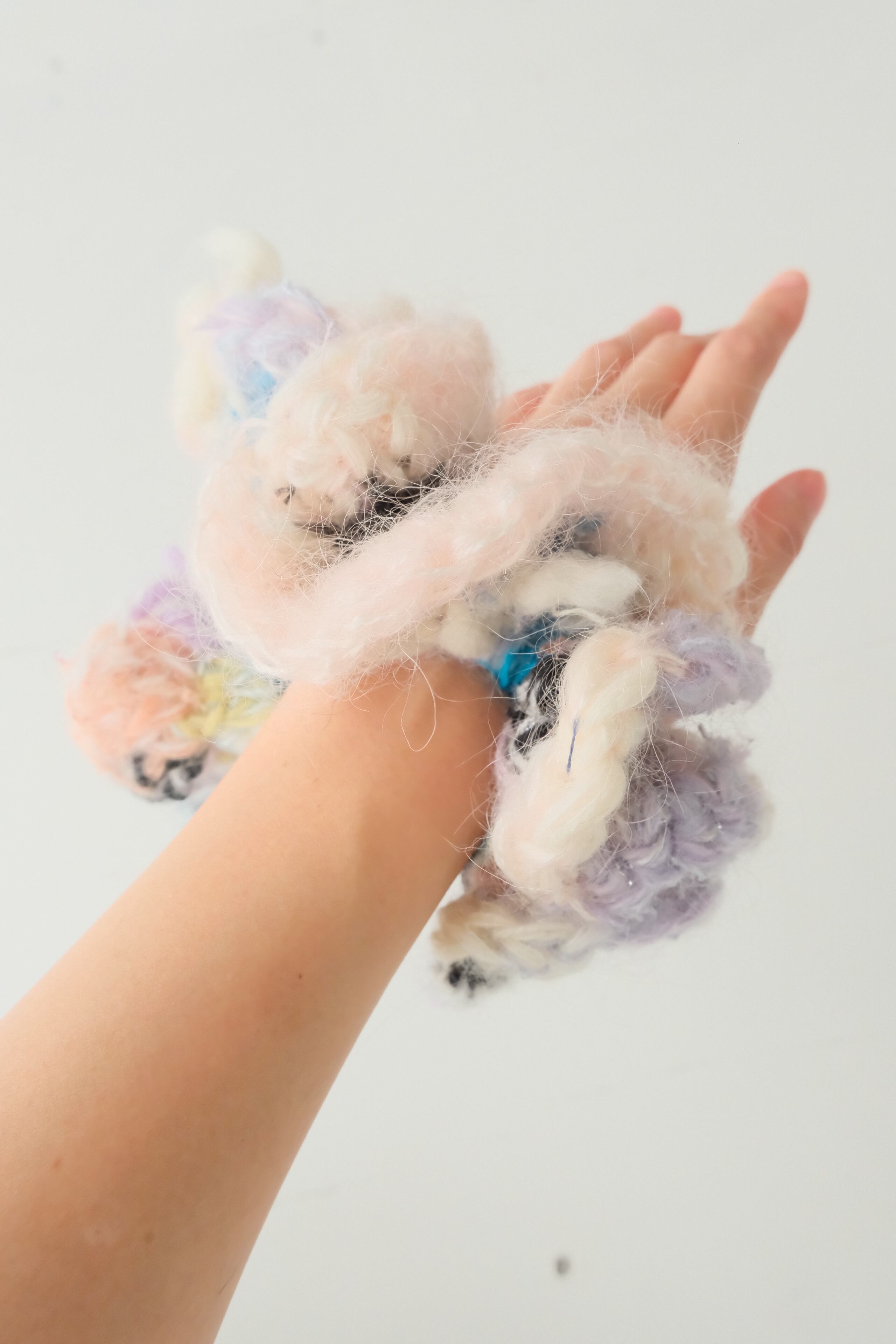 数十種類の毛糸をミックスしたボリュームのあるシュシュ
