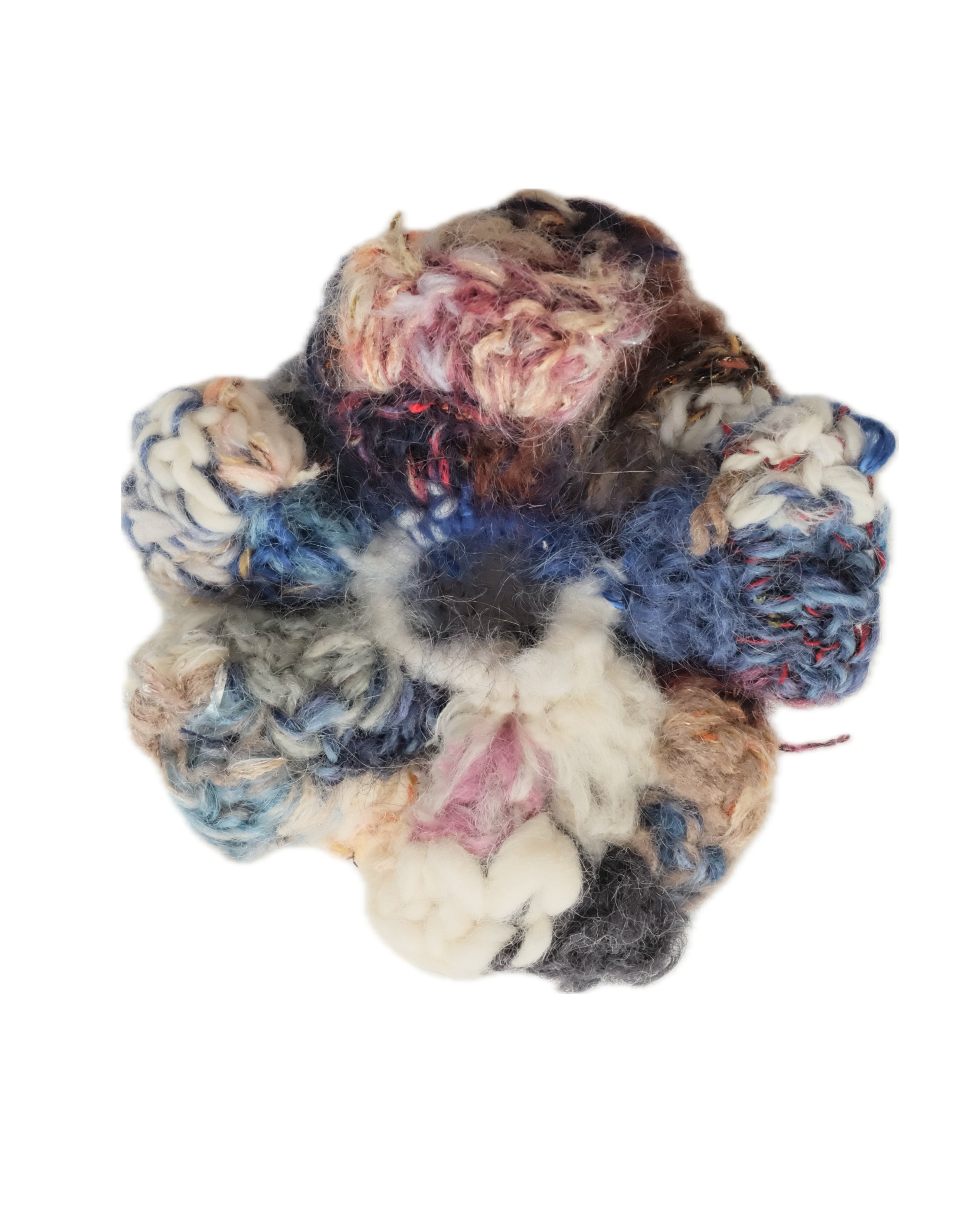 数十種類の毛糸をミックスしたボリュームのあるシュシュ