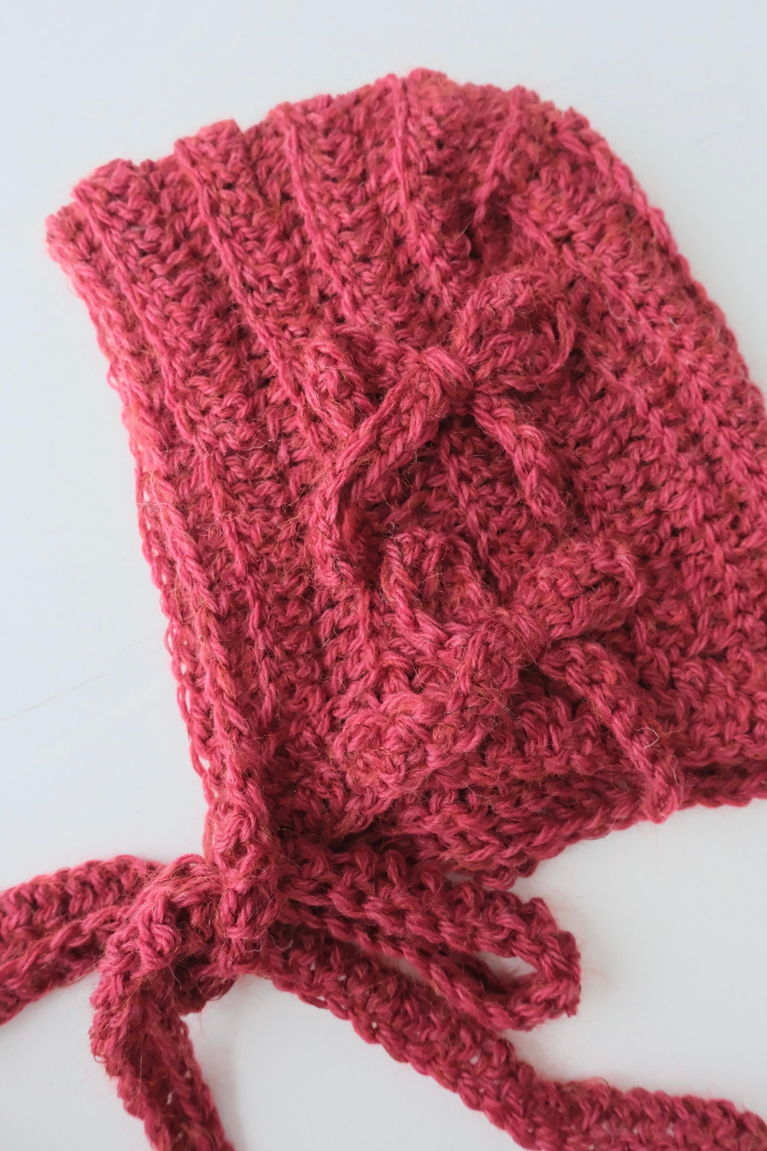 毛糸のリボンをあしらったあたたかいバブーシュカ