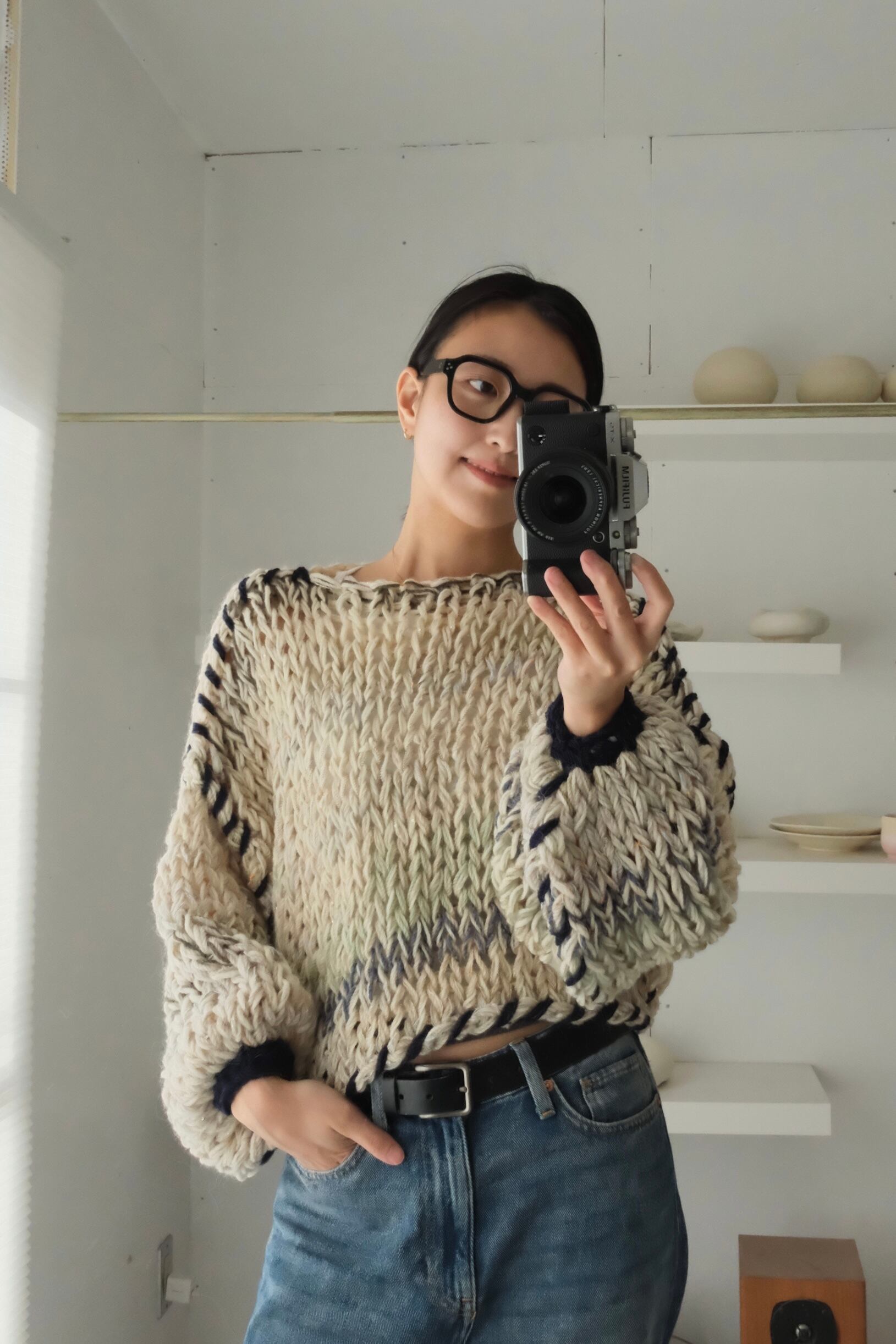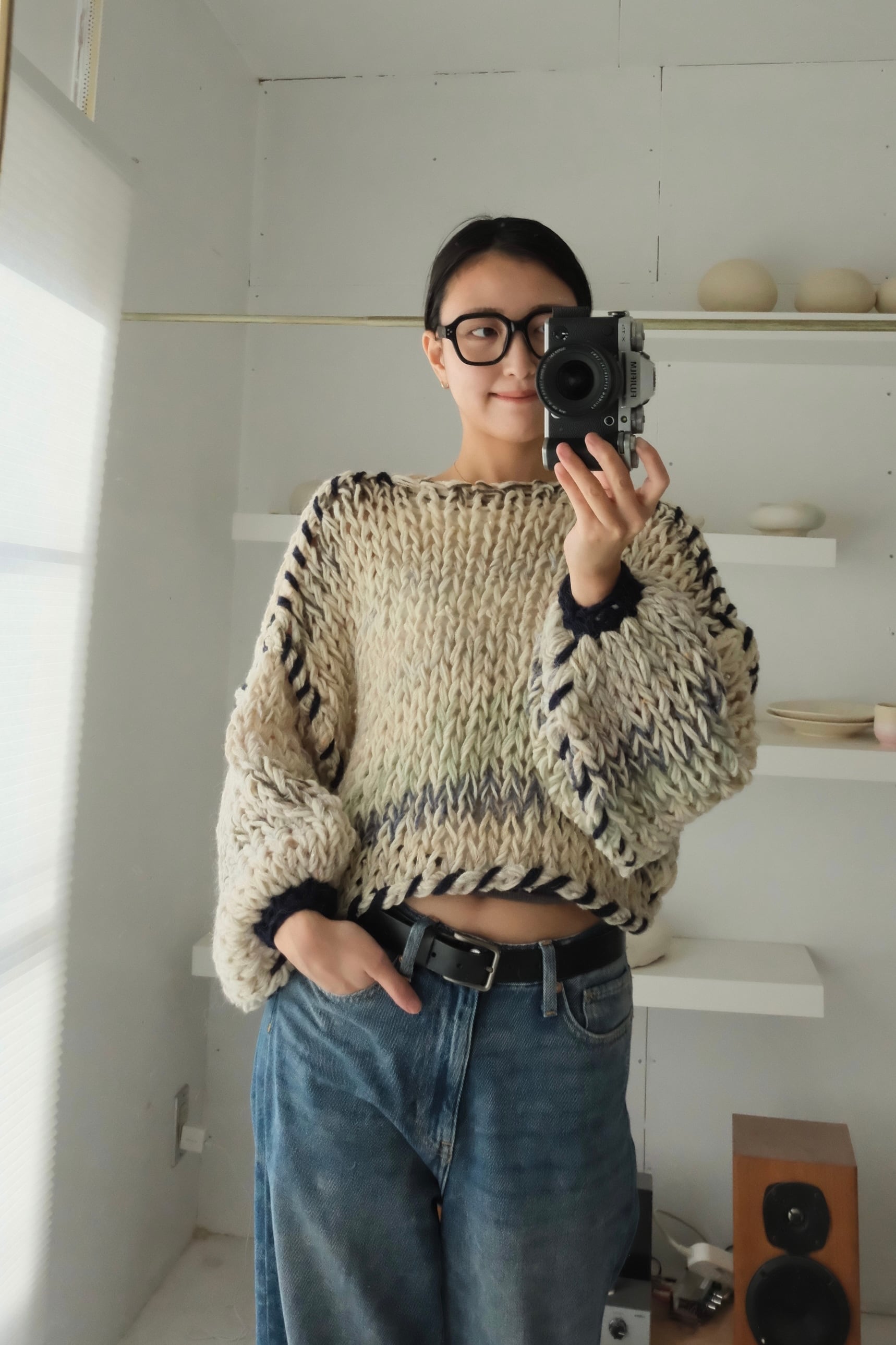 一期一会のセカンドハンド毛糸を使用した、全て一点物の手編みセーター。