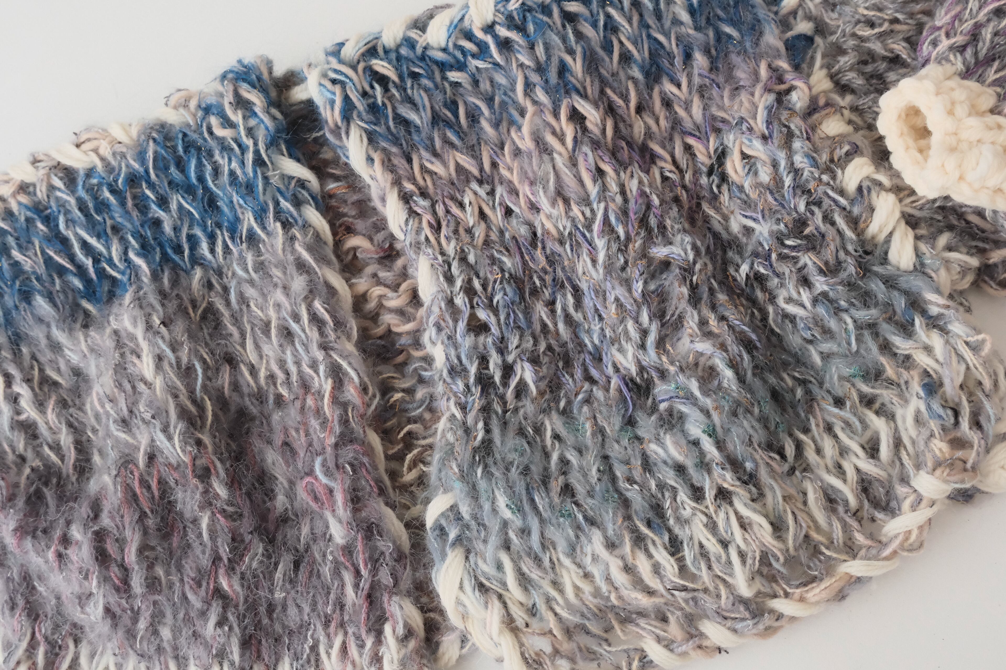 •セカンドハンドの毛糸を混ぜて使用しているため正確な品質表示が出せませんが、主に60~100%モヘア/ウール、その他アンゴラ、綿、シルク、アクリル、ポリエステルなどです。