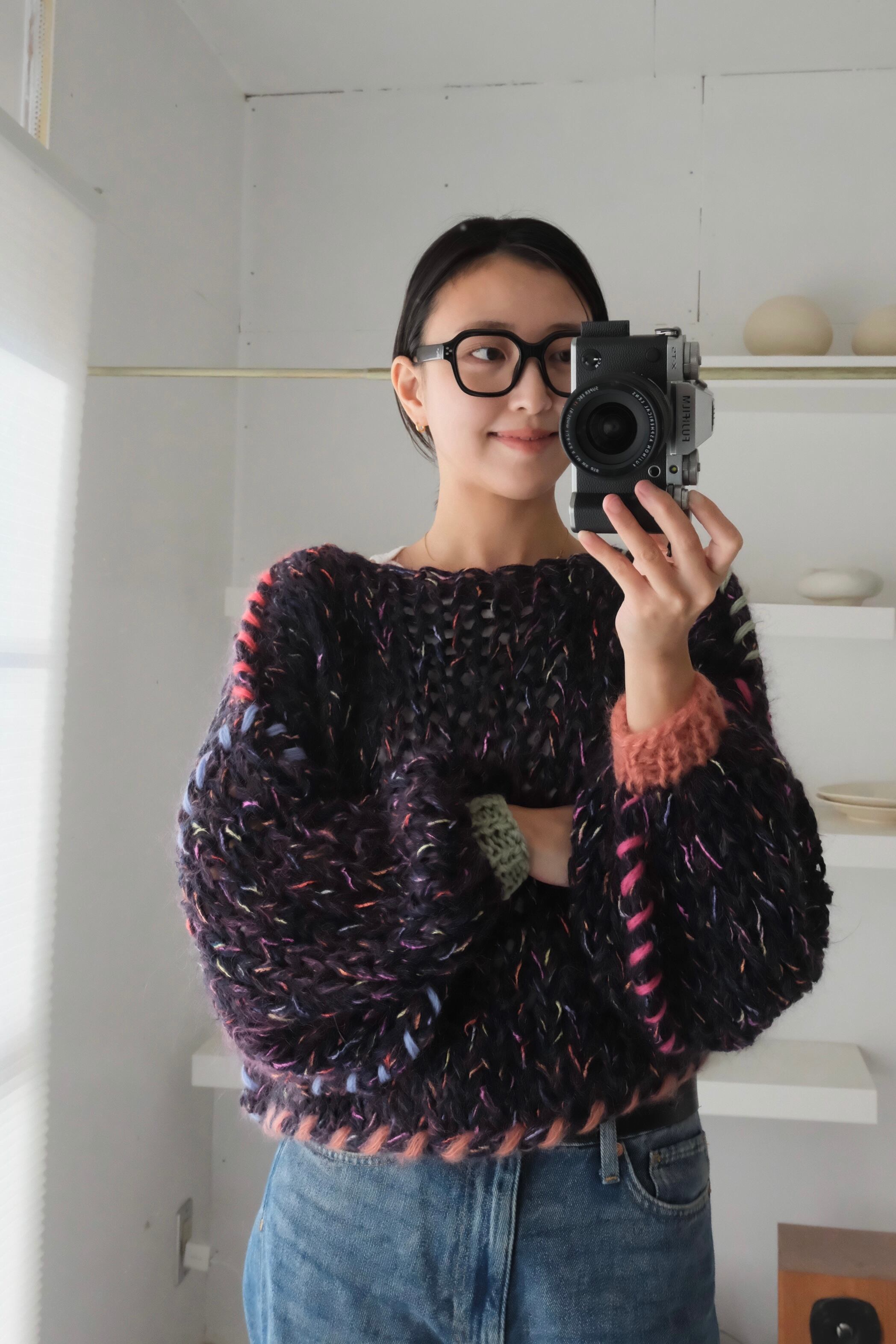 特にミックス毛糸でシースルーに仕上げている商品では、仕上げの際に糸端の処理をしていても着用中に糸端が表にでることがあります。質感の一部としてお楽しみ頂ける方のみご購入ください。