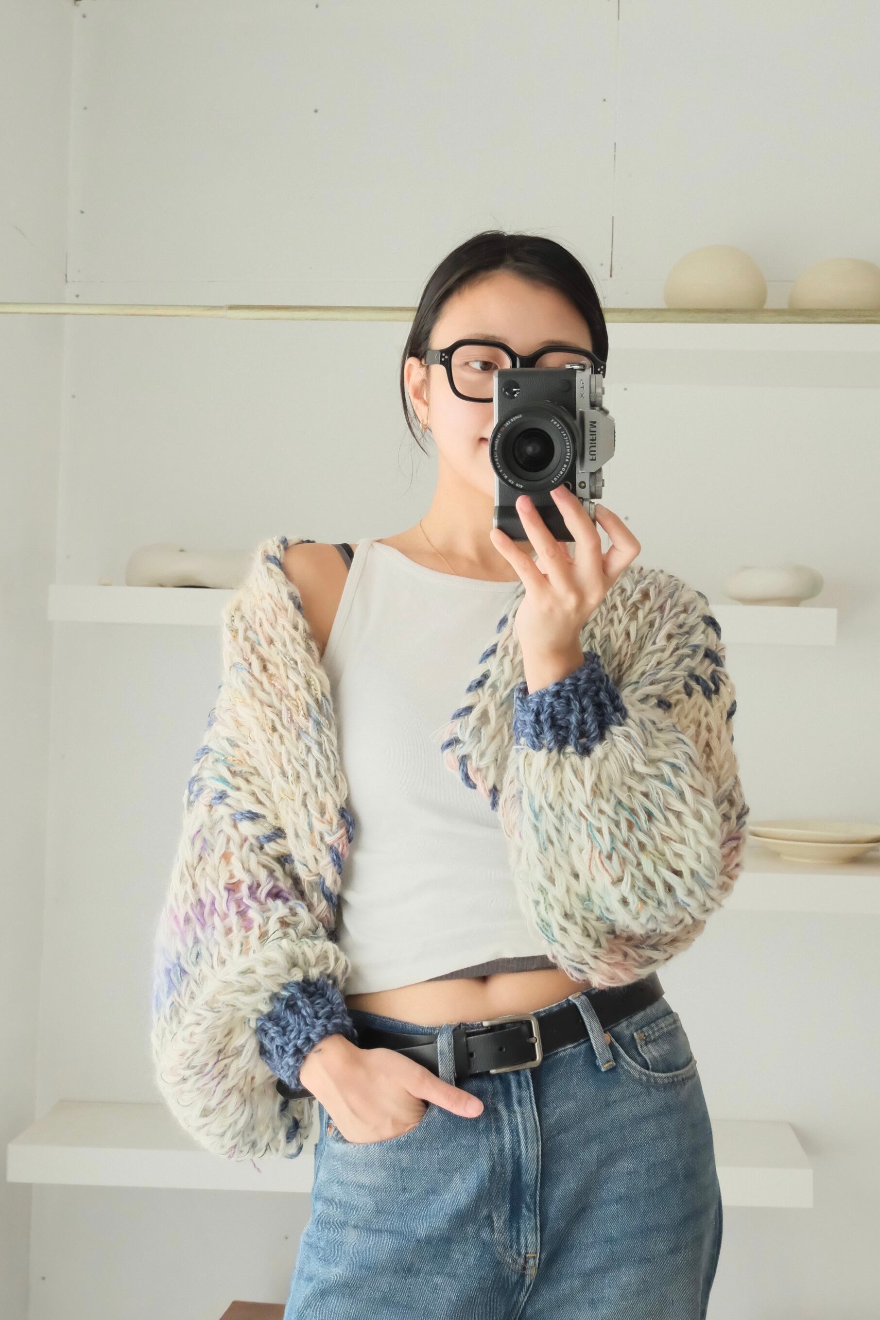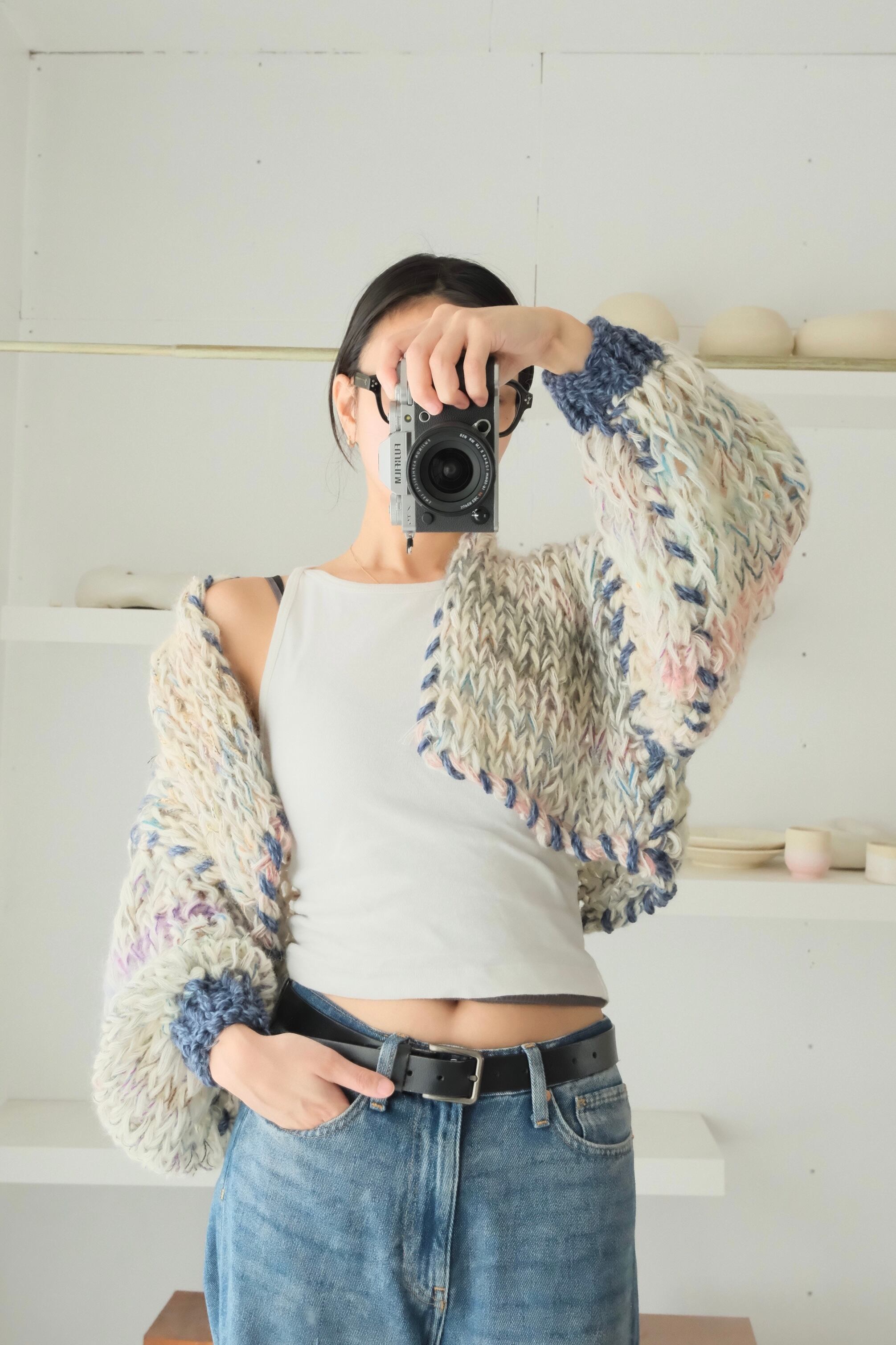 – Since we repurpose second hand yarn, we are not able to provide exact information about the materials. Please note that because of this, some dry cleaning stores may reject taking in knitwear you have purchased from amuamu.
