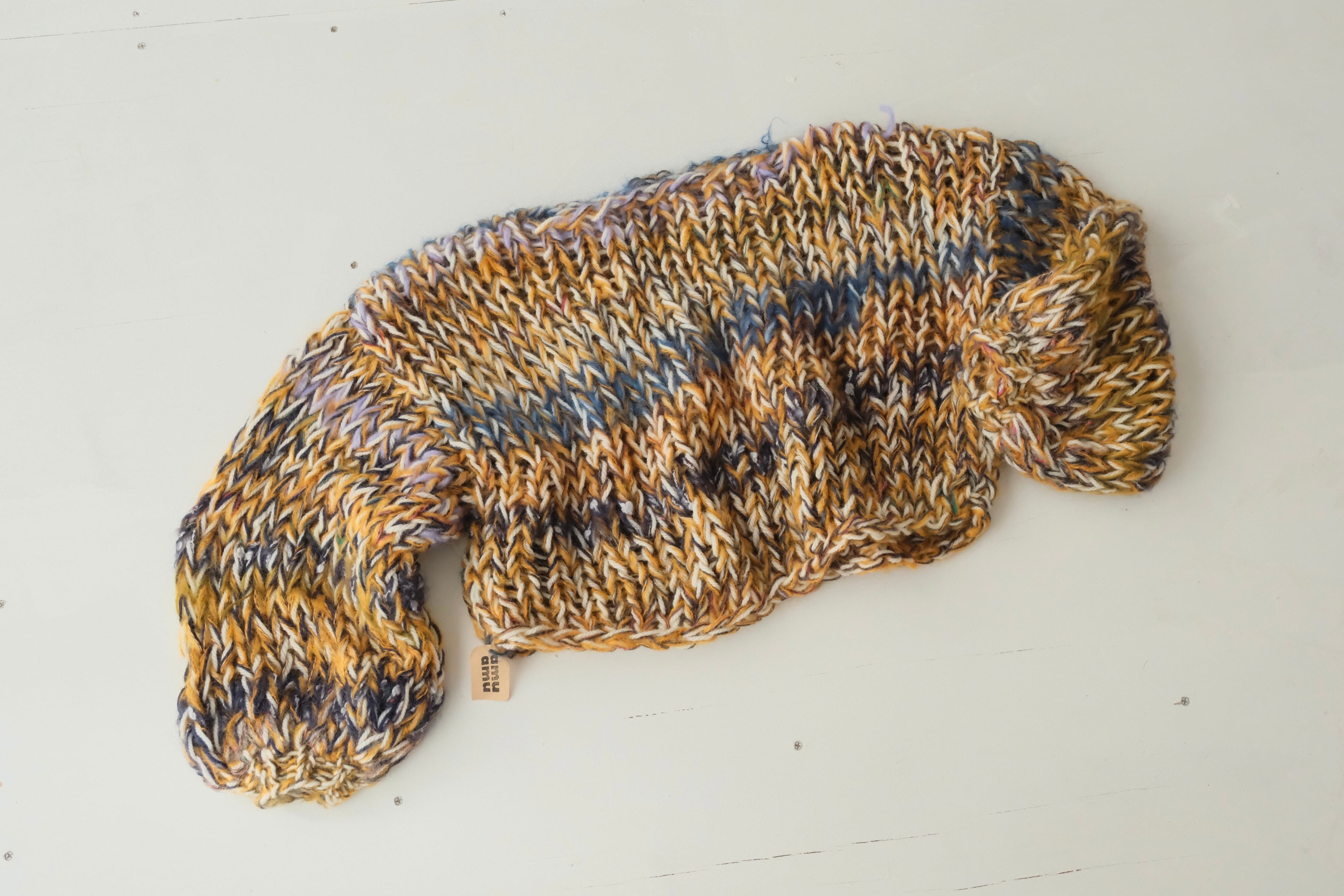 一期一会のセカンドハンド毛糸を使用した、全て一点物の手編みセーター。