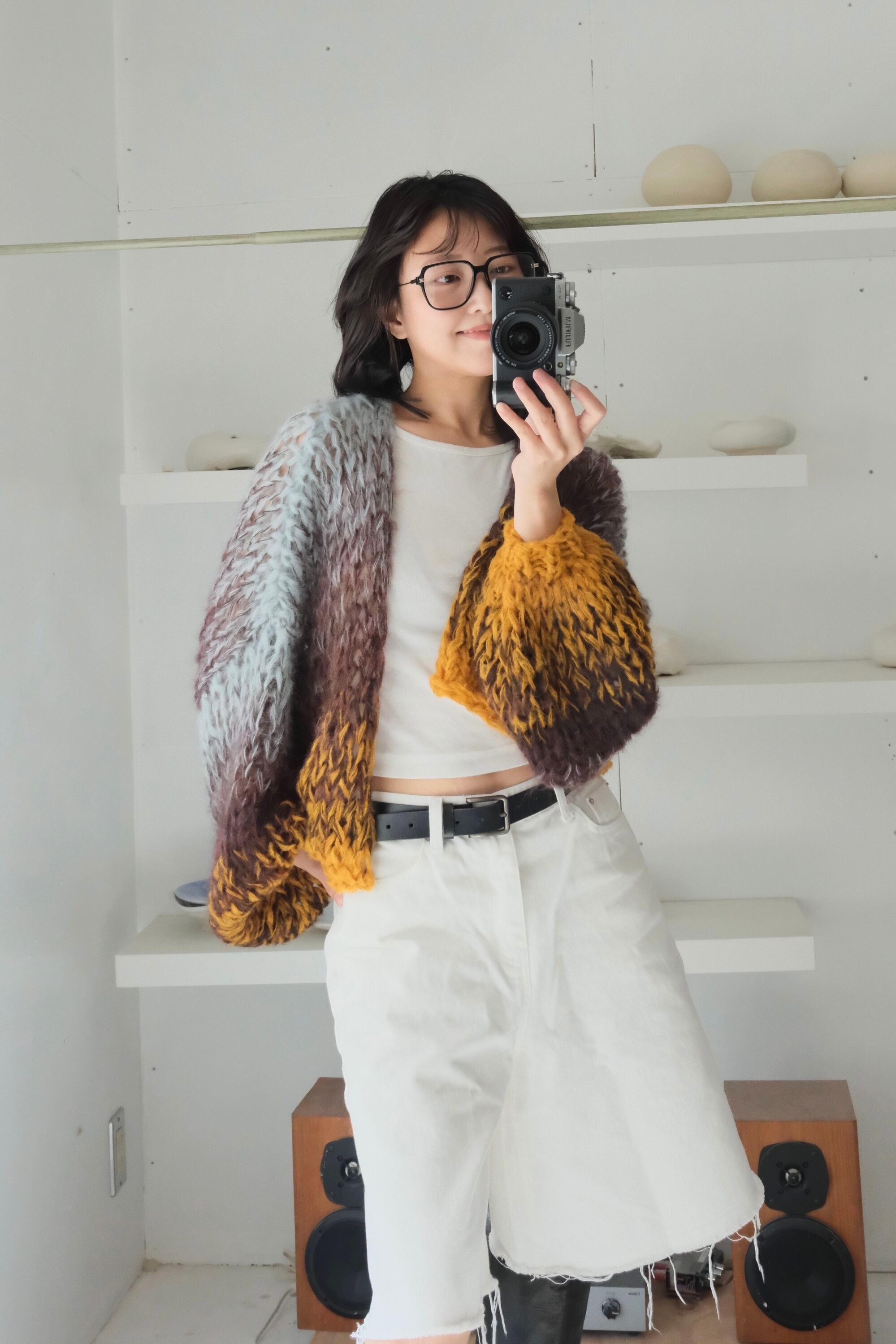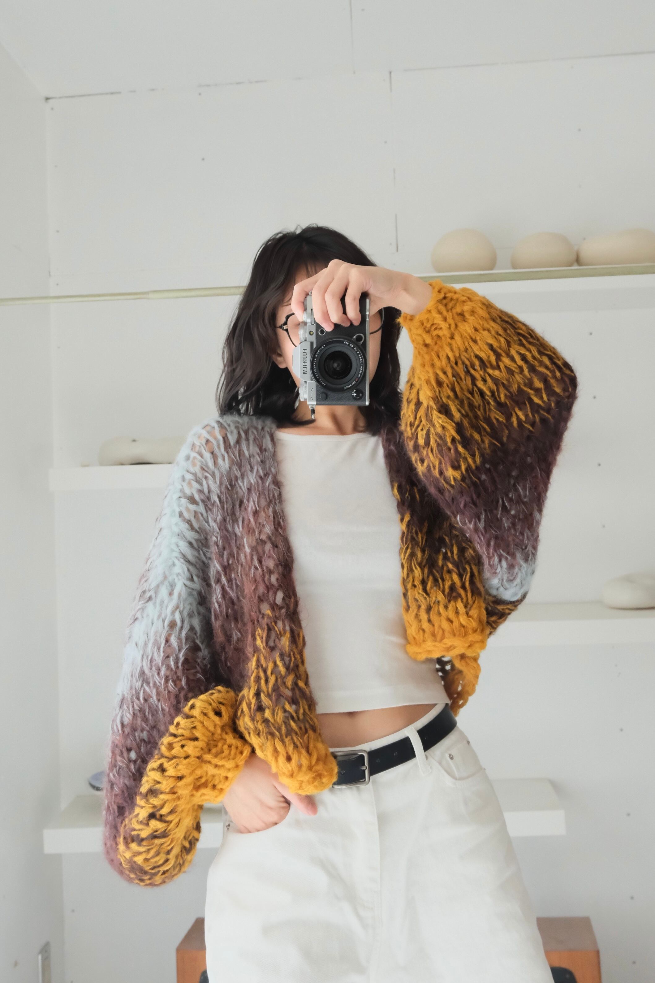 •セカンドハンドの毛糸を混ぜて使用しているため正確な品質表示が出せませんが、主に60~100%モヘア/ウール、その他アンゴラ、綿、シルク、アクリル、ポリエステルなどです。