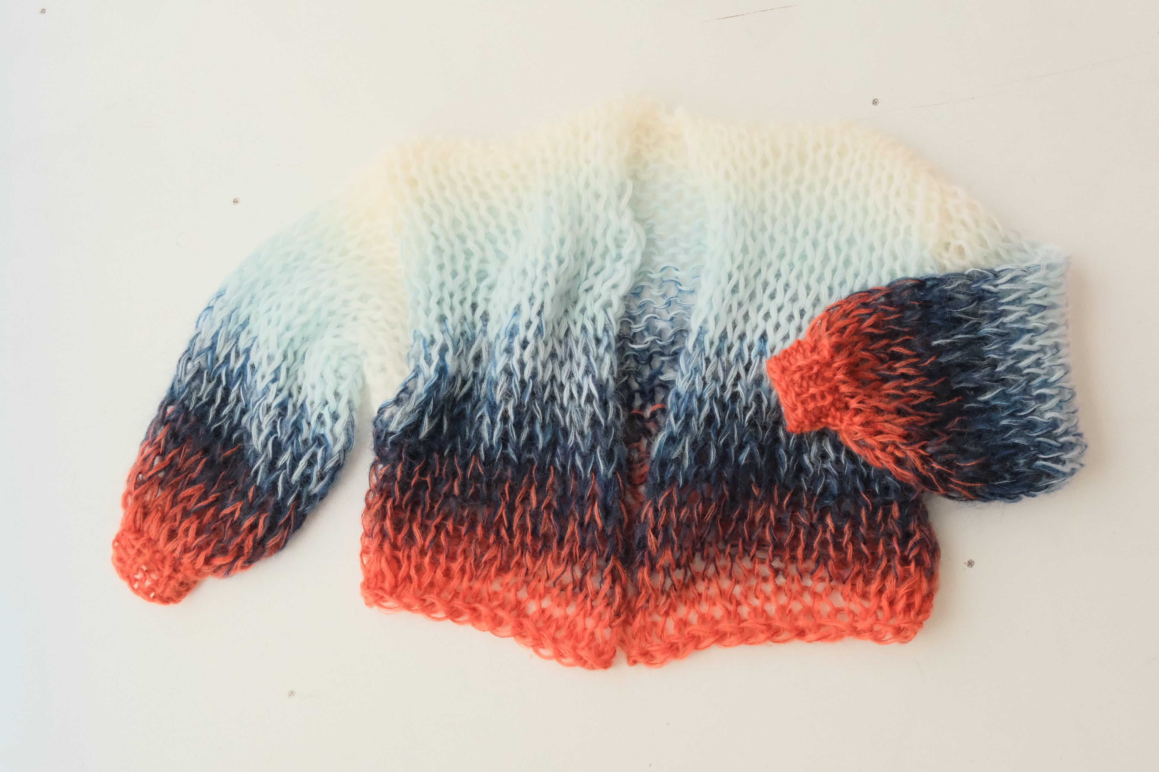 An airy, cosy layer of comfort that hugs your skin — every single piece is uniquely handknitted, using plenty of high quality second hand wool and mohair yarns.