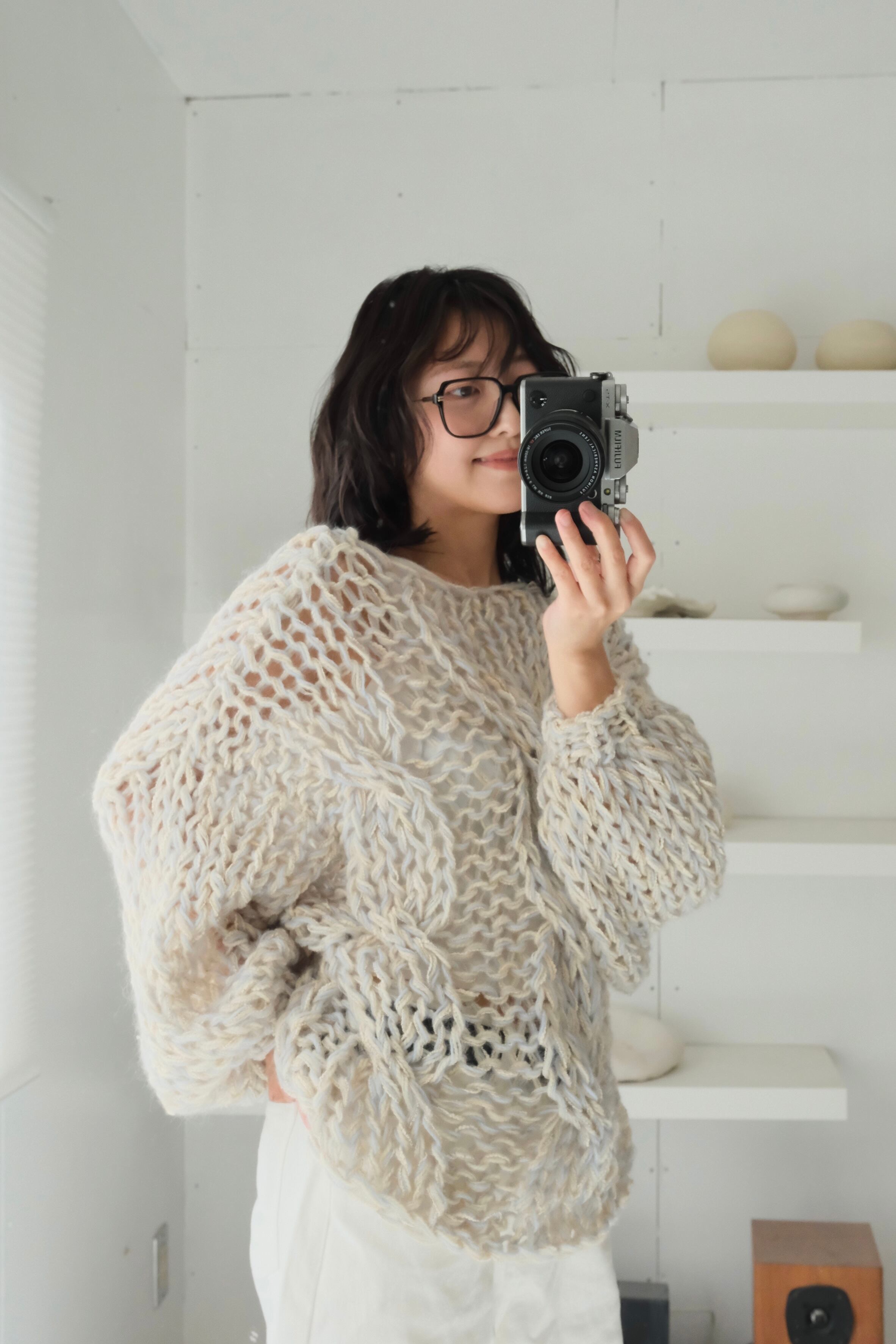 特にミックス毛糸でシースルーに仕上げている商品では、仕上げの際に糸端の処理をしていても着用中に糸端が表にでることがあります。質感の一部としてお楽しみ頂ける方のみご購入ください。
