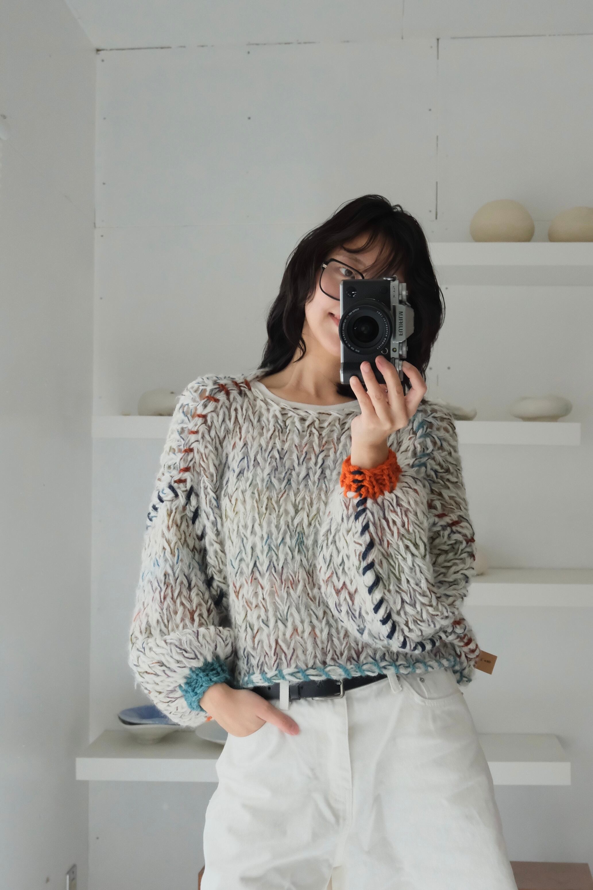 一期一会のセカンドハンド毛糸を使用した、全て一点物の手編みセーター。