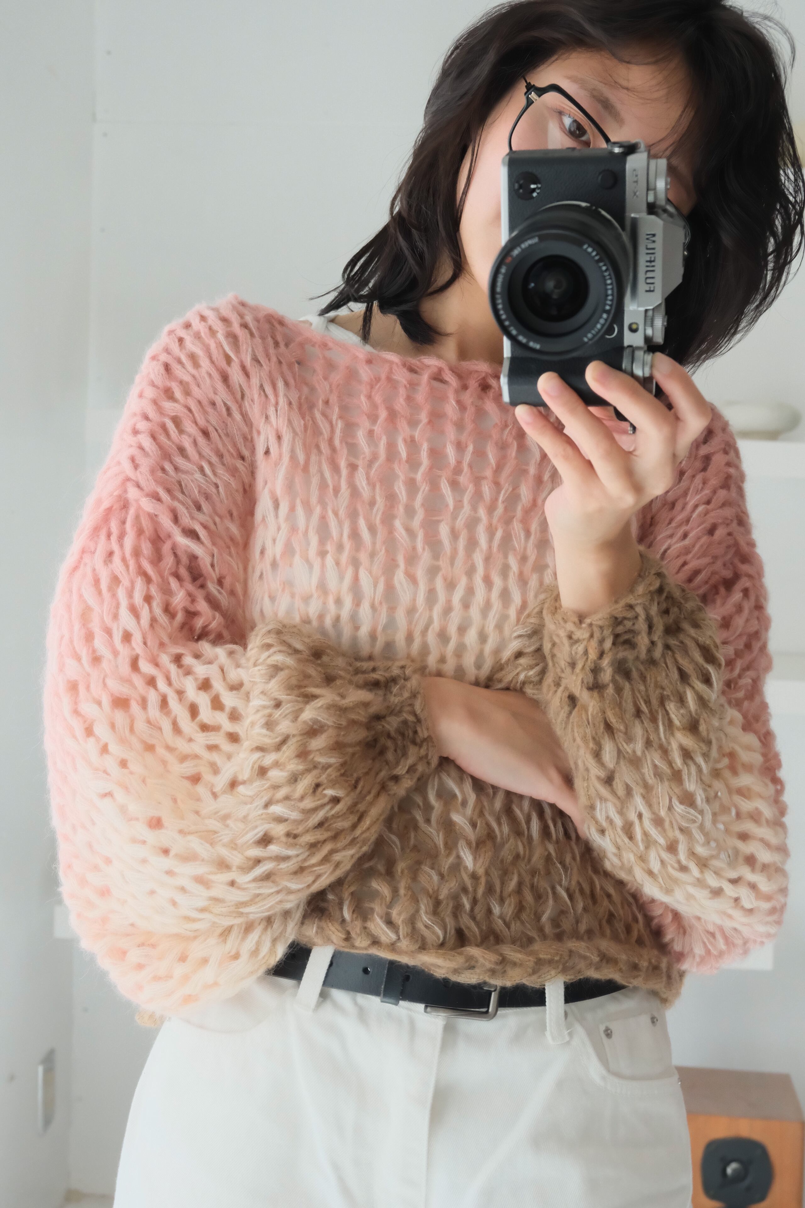 特にミックス毛糸でシースルーに仕上げている商品では、仕上げの際に糸端の処理をしていても着用中に糸端が表にでることがあります。質感の一部としてお楽しみ頂ける方のみご購入ください。