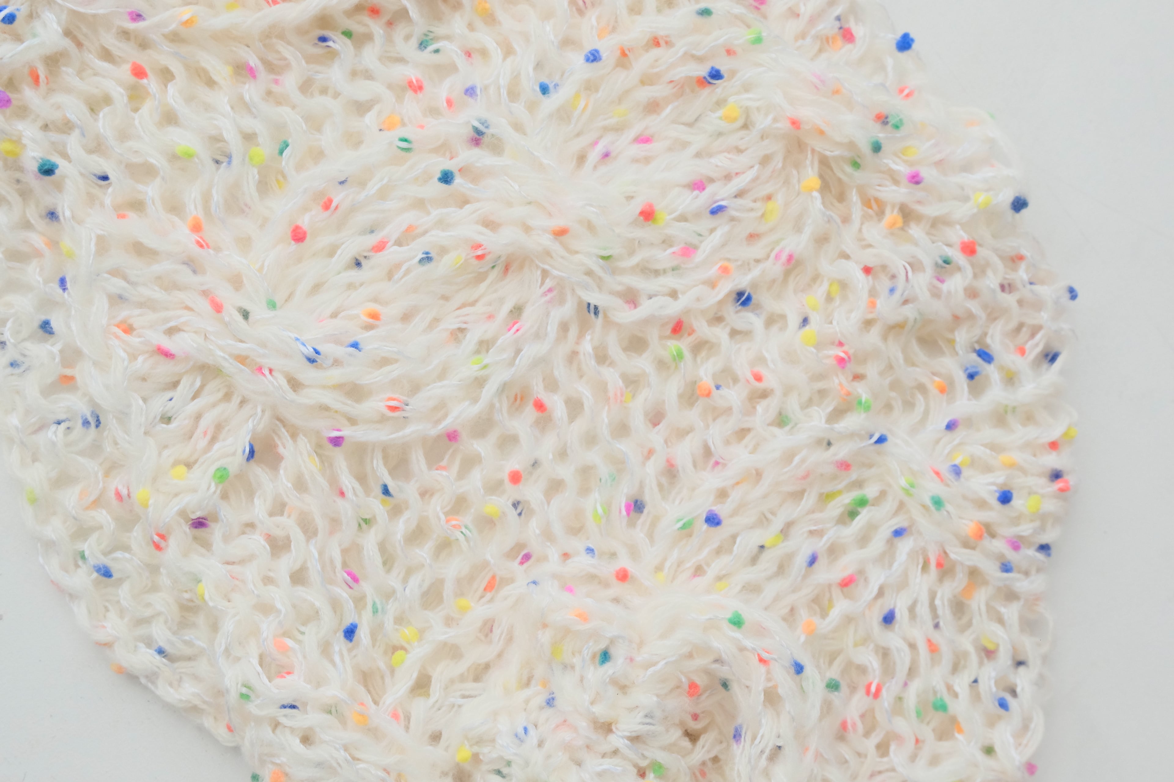 •セカンドハンドの毛糸を混ぜて使用しているため正確な品質表示が出せませんが、主に60~100%モヘア/ウール、その他アンゴラ、綿、シルク、アクリル、ポリエステルなどです。