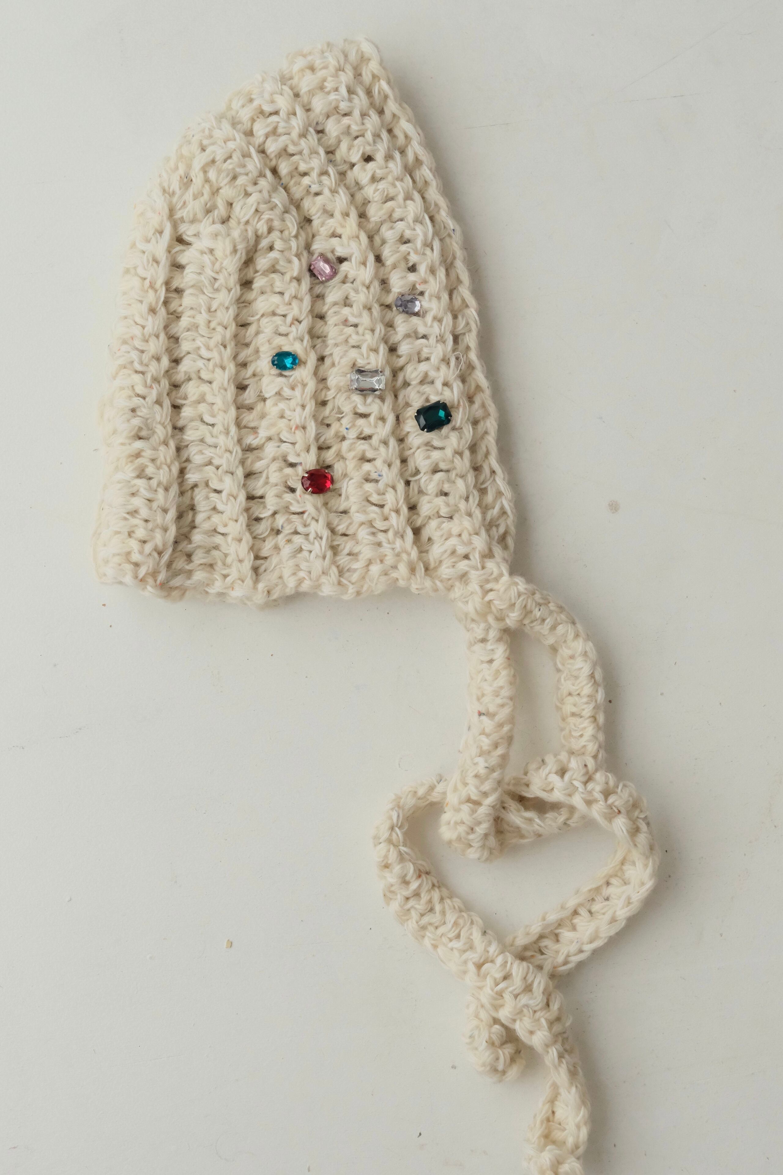 ビジューをたっぷりあしらった、手編みの暖かなバブーシュカ