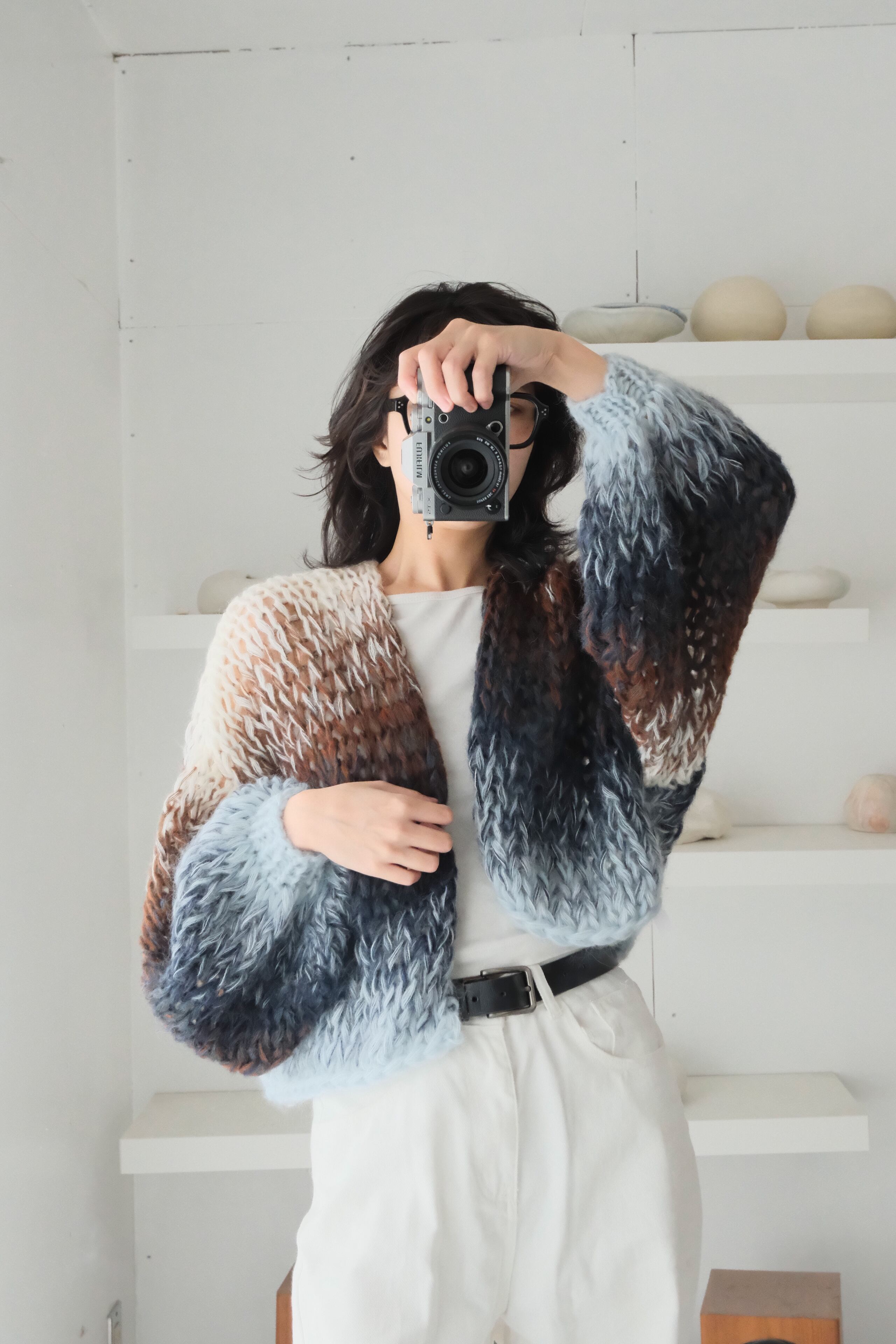 An airy, cosy layer of comfort that hugs your skin — every single piece is uniquely handknitted, using plenty of high quality second hand wool and mohair yarns.