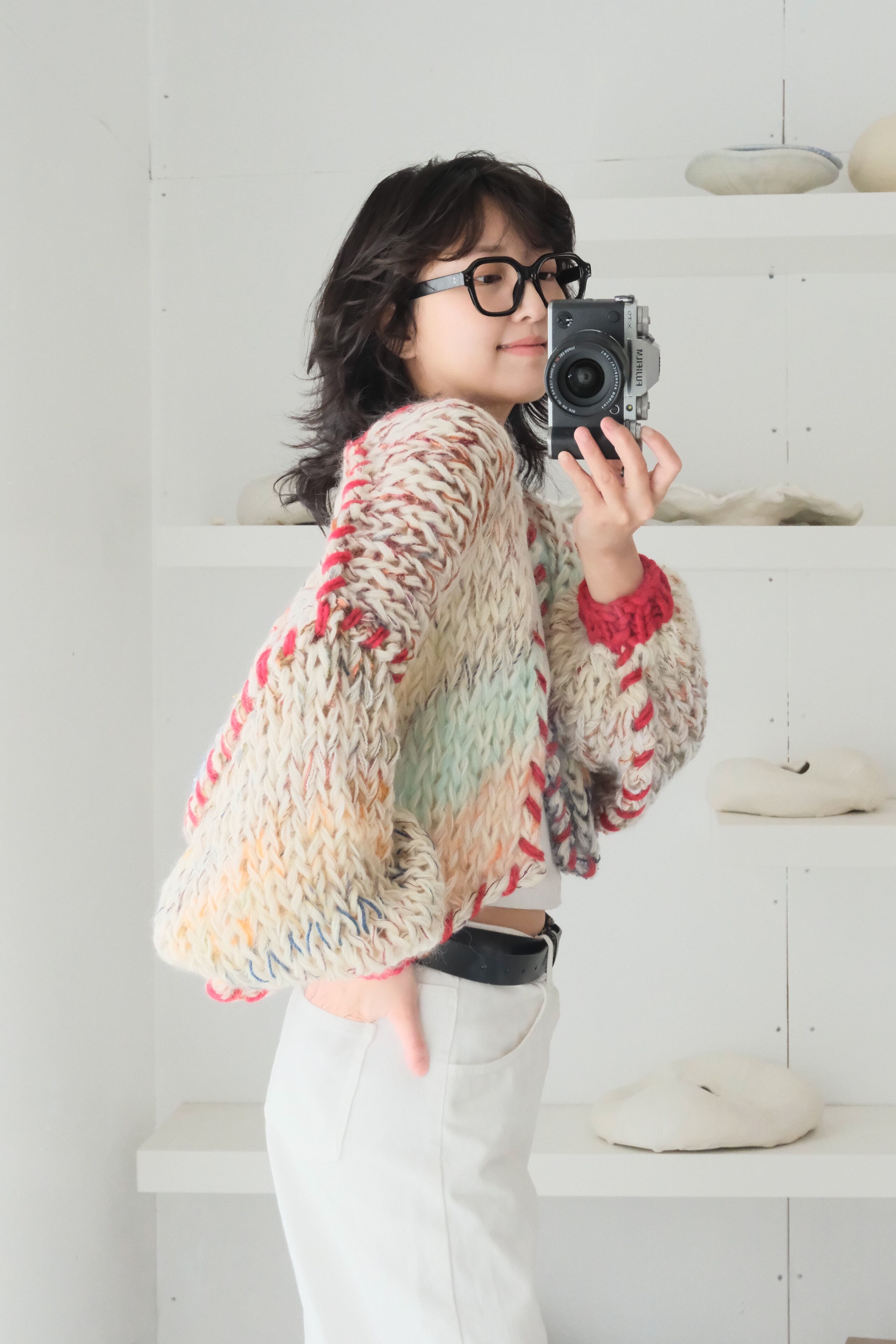 数十種類の毛糸をミックスして編み上げたカーディガン