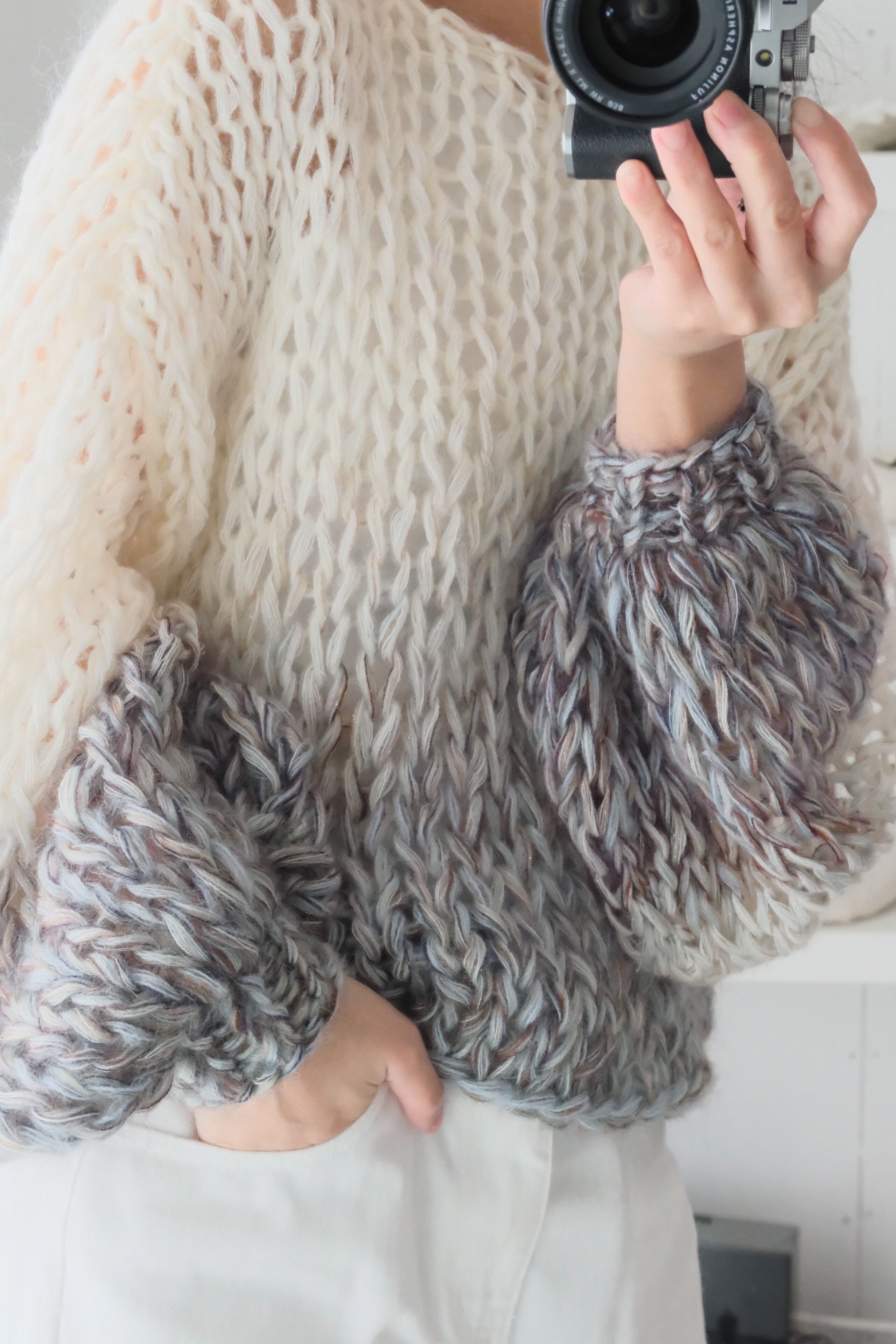 An airy, cosy layer of comfort that hugs your skin — every single piece is uniquely handknitted, using plenty of high quality second hand wool and mohair yarns.