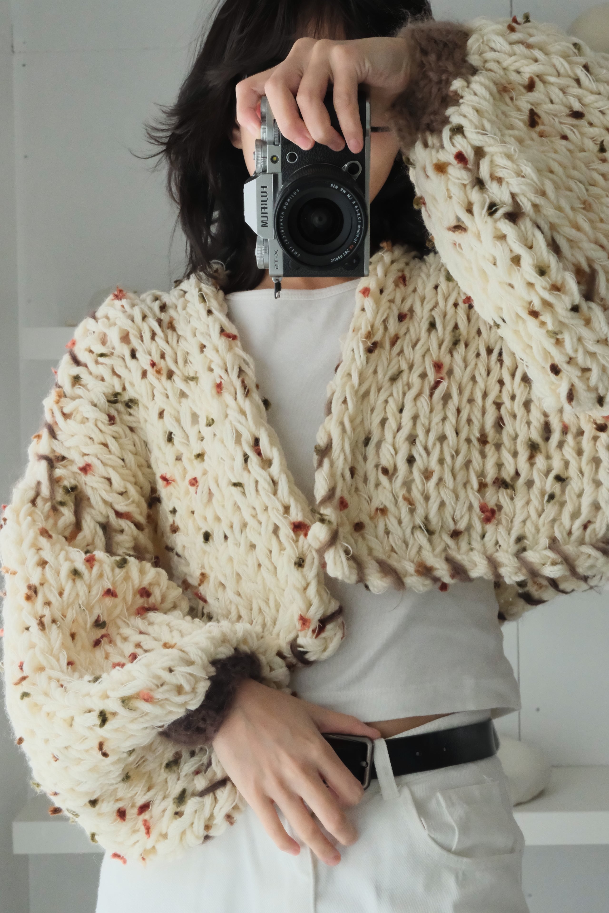 遊び心のあるネップ毛糸を使用したカーディガン