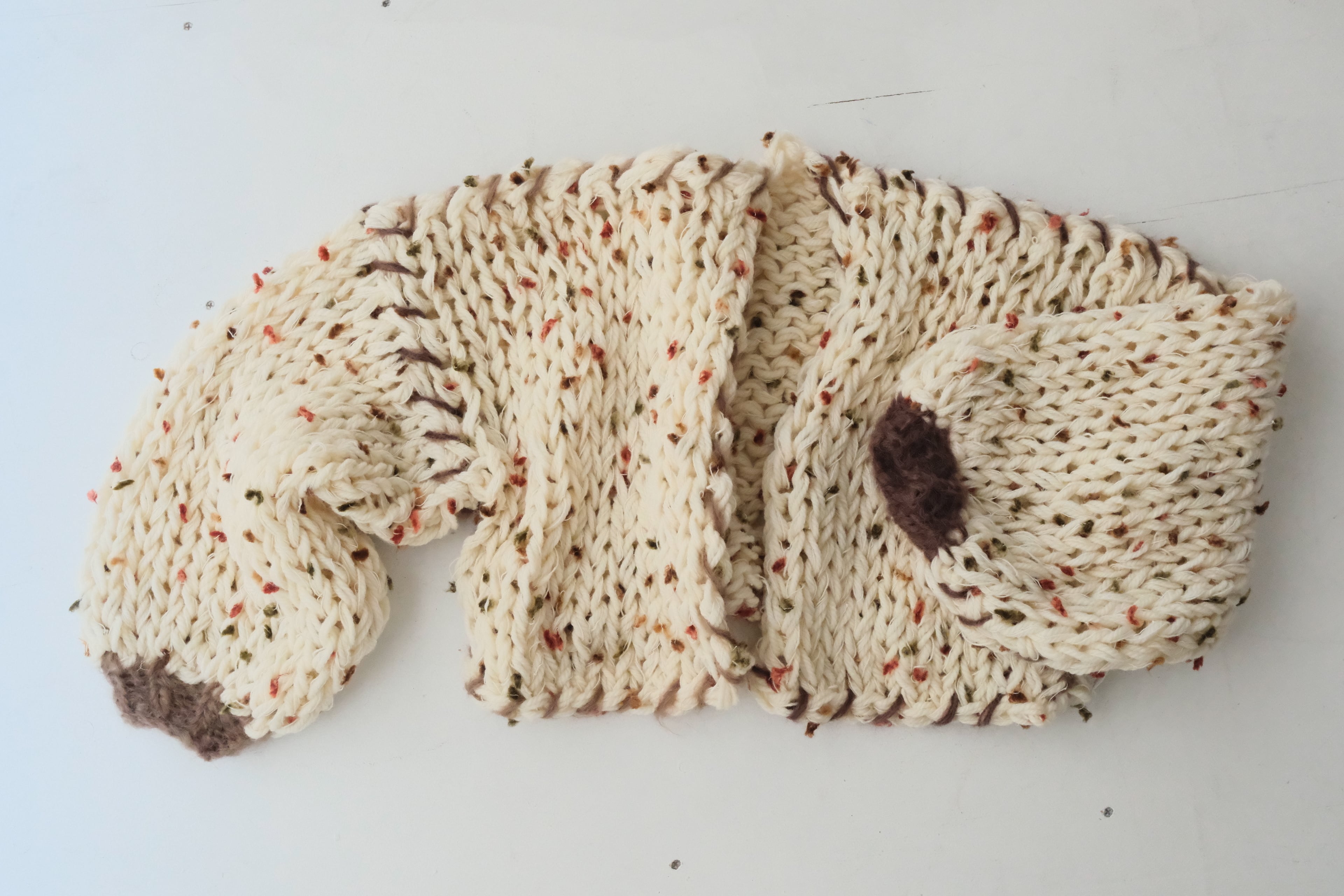 – All items are handmade. The hand knitted texture is part of what makes our products one of a kind. If you are looking for factory-made precision, our knits may not be best suited for you.