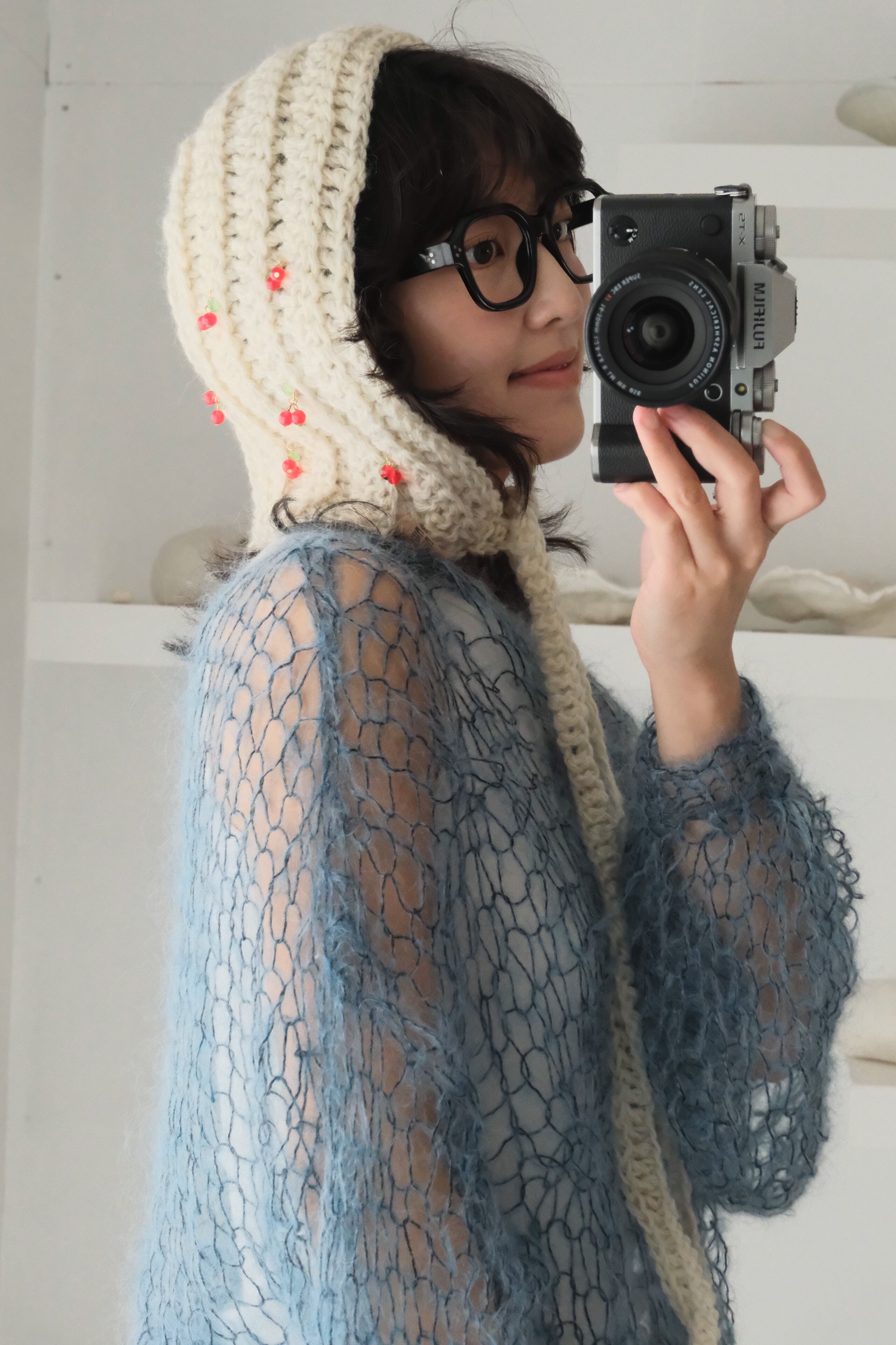 特にミックス毛糸でシースルーに仕上げている商品では、仕上げの際に糸端の処理をしていても着用中に糸端が表にでることがあります。質感の一部としてお楽しみ頂ける方のみご購入ください。