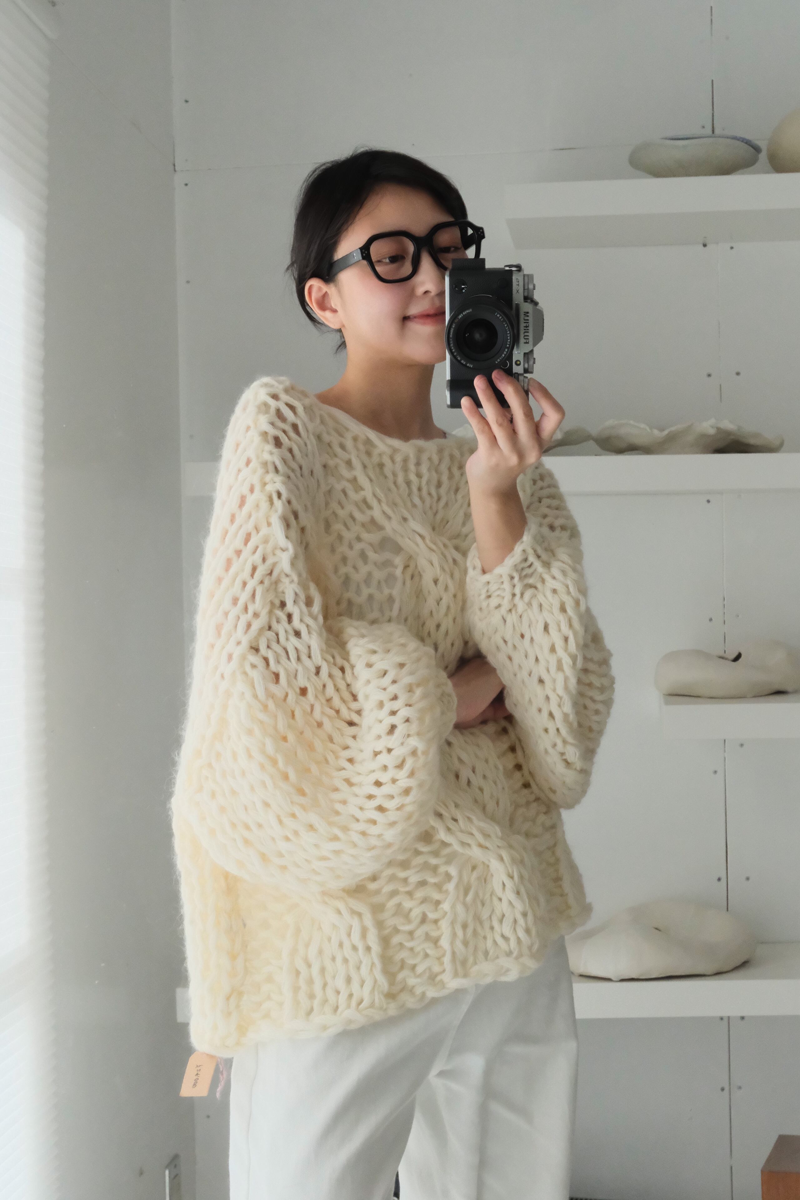 モヘアとウールをたっぷり使用してチャンキーに編み上げたセーター