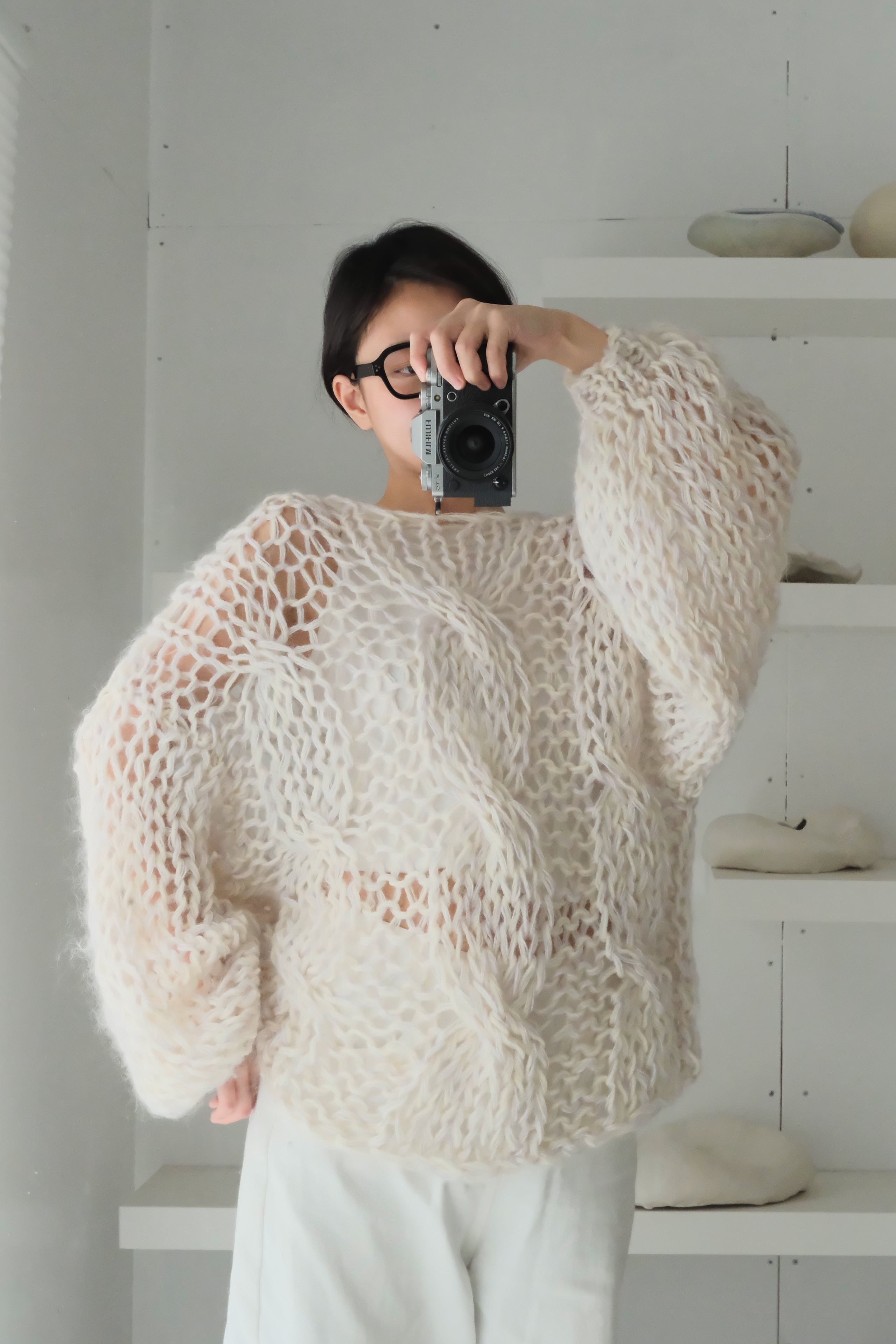 An airy, cosy layer of comfort that hugs your skin — every single piece is uniquely handknitted, using plenty of high quality second hand wool and mohair yarns.