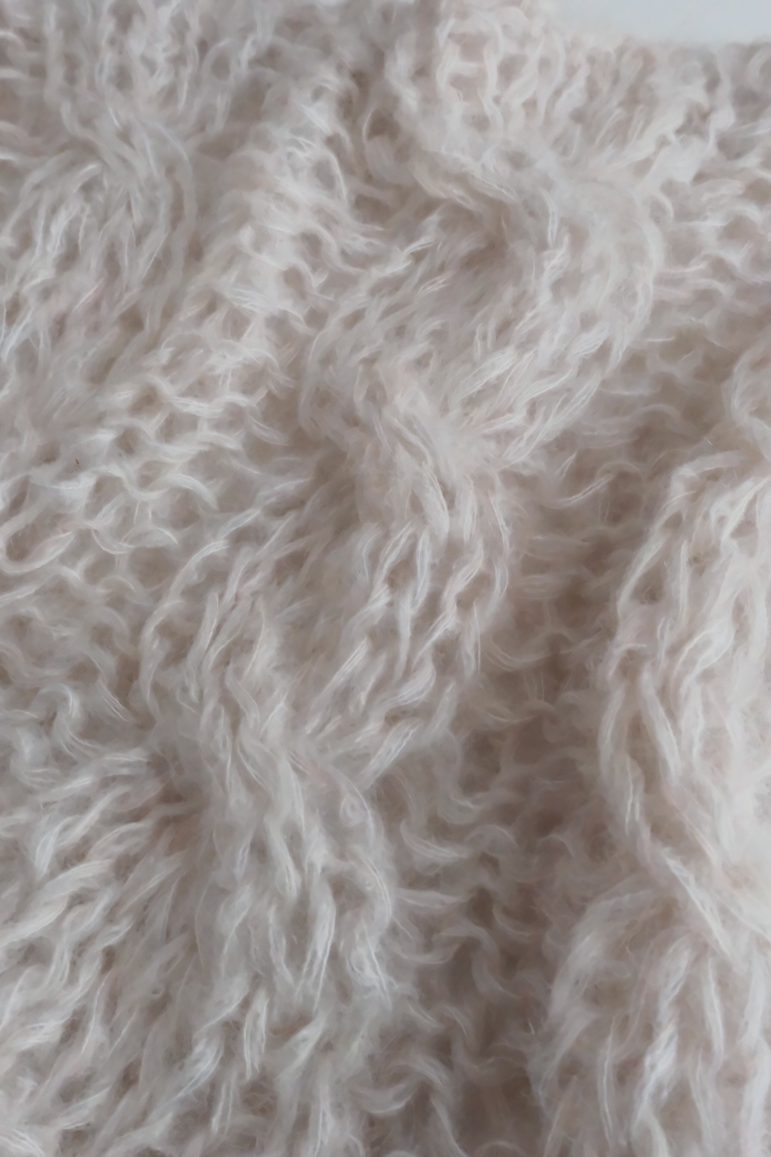 •セカンドハンドの毛糸を混ぜて使用しているため正確な品質表示が出せませんが、主に60~100%モヘア/ウール、その他アンゴラ、綿、シルク、アクリル、ポリエステルなどです。