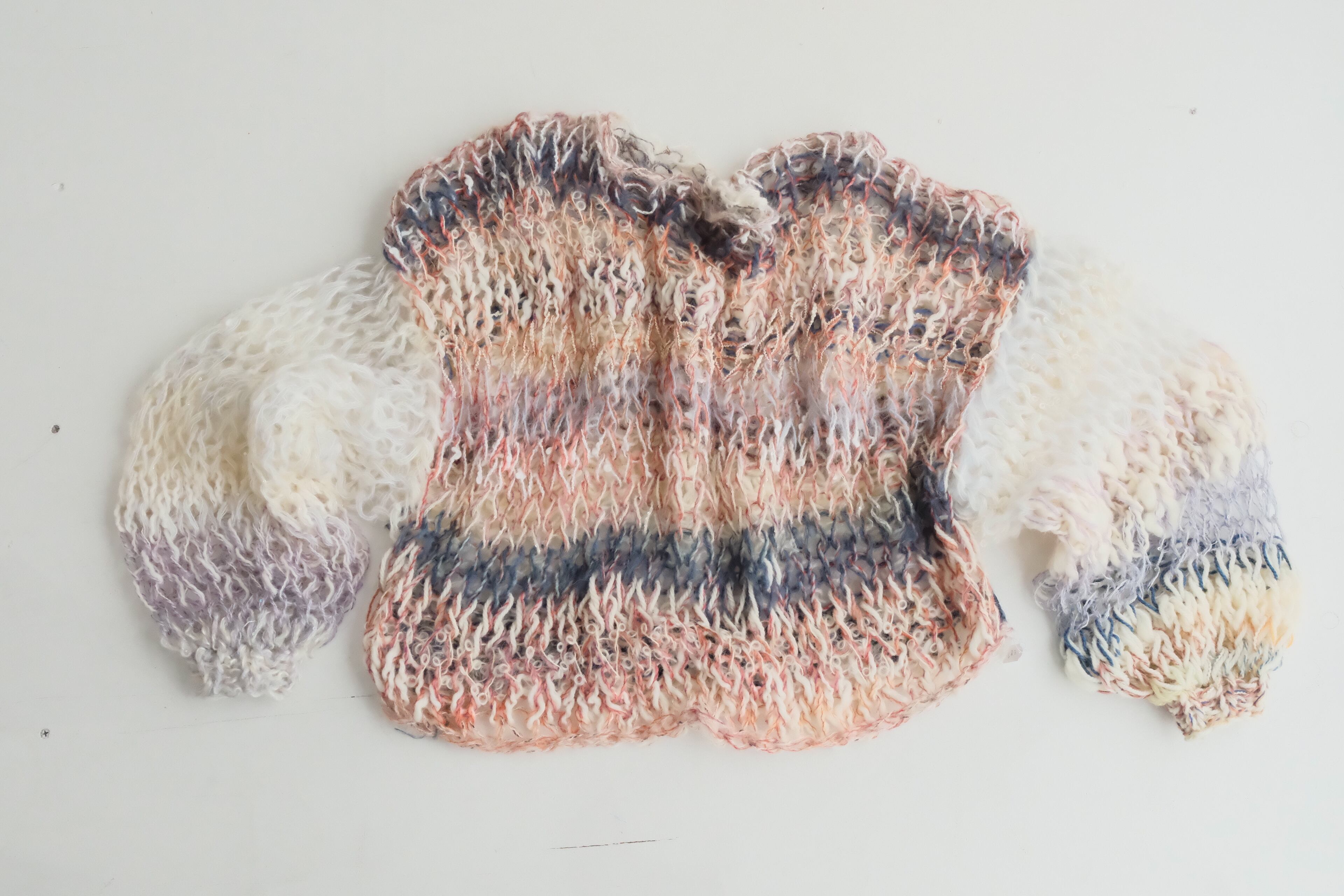 質感の異なる毛糸を数十種類ミックスしたシースルーセーター