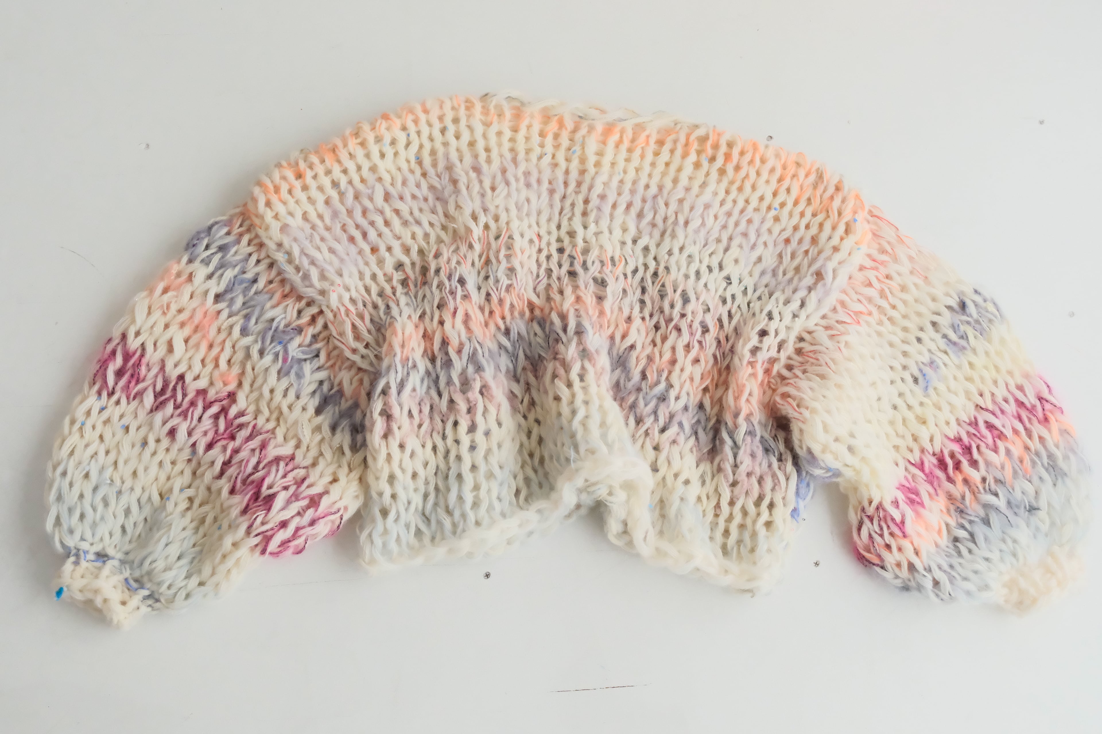 An airy, cosy layer of comfort that hugs your skin — every single piece is uniquely handknitted, using plenty of high quality second hand wool and mohair yarns.