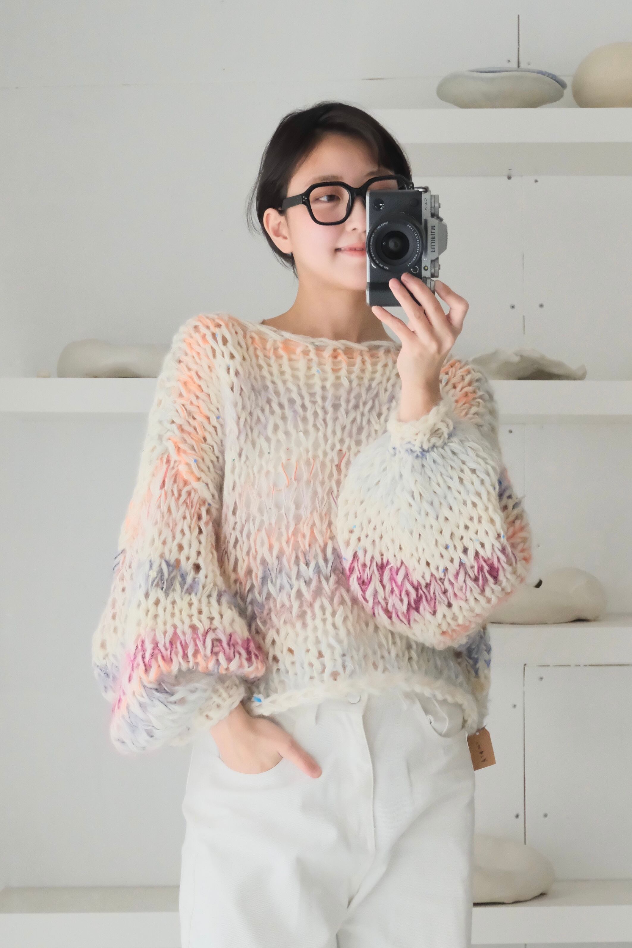 柔らかなモヘアをベースに明るい色の毛糸をミックスしたセーター