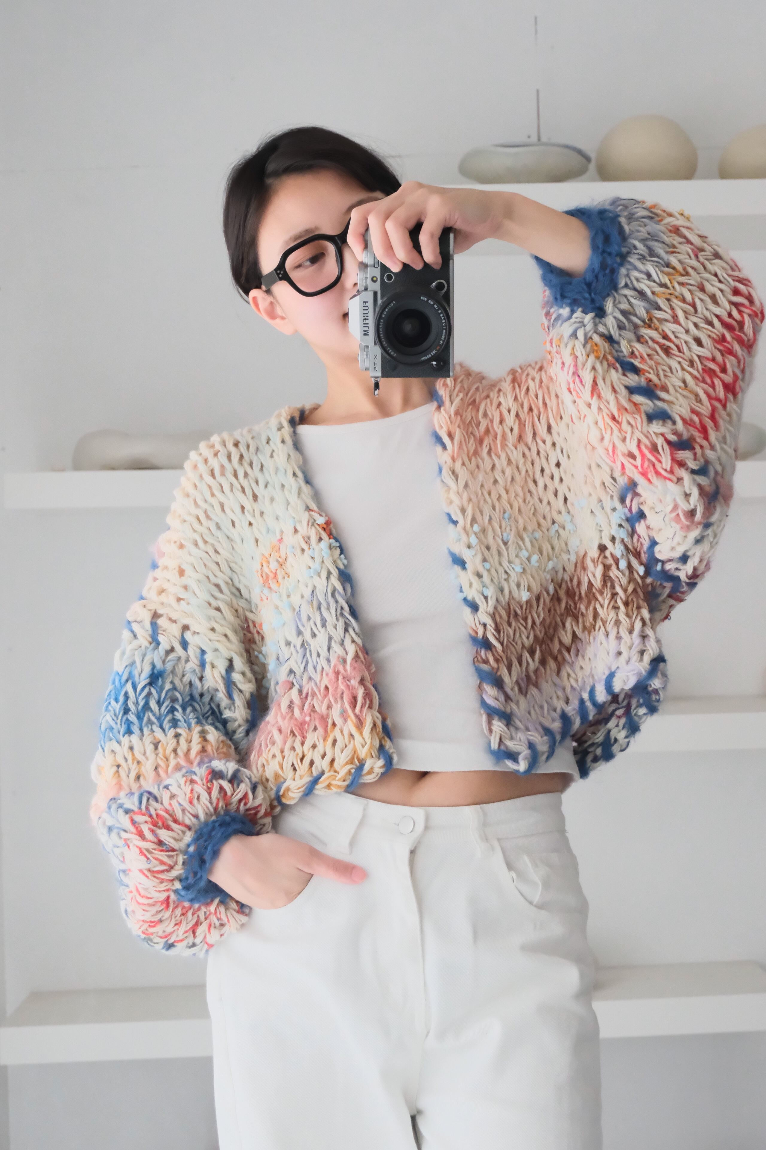 – Since we repurpose second hand yarn, we are not able to provide exact information about the materials. Please note that because of this, some dry cleaning stores may reject taking in knitwear you have purchased from amuamu.