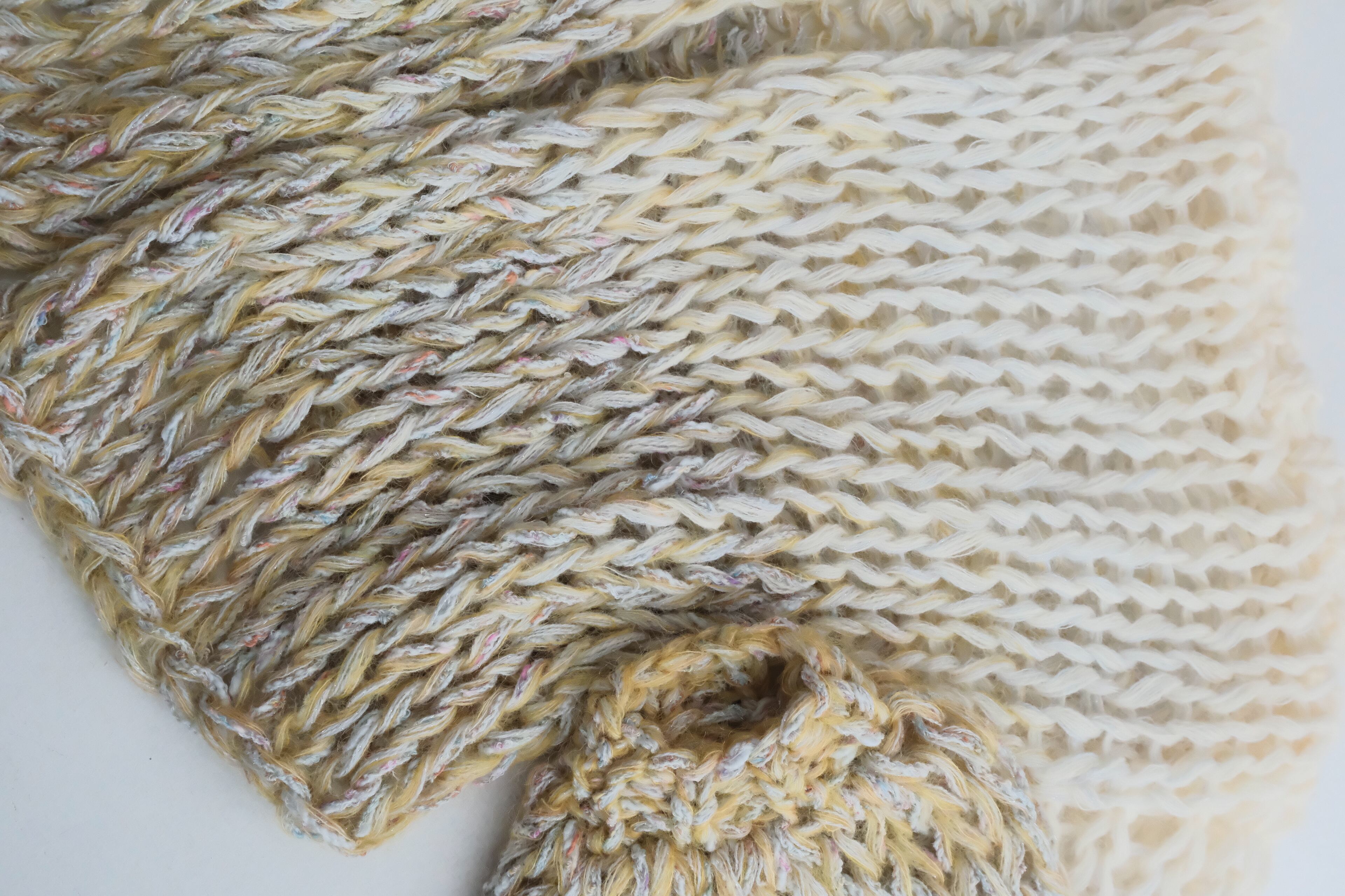 •セカンドハンドの毛糸を混ぜて使用しているため正確な品質表示が出せませんが、主に60~100%モヘア/ウール、その他アンゴラ、綿、シルク、アクリル、ポリエステルなどです。