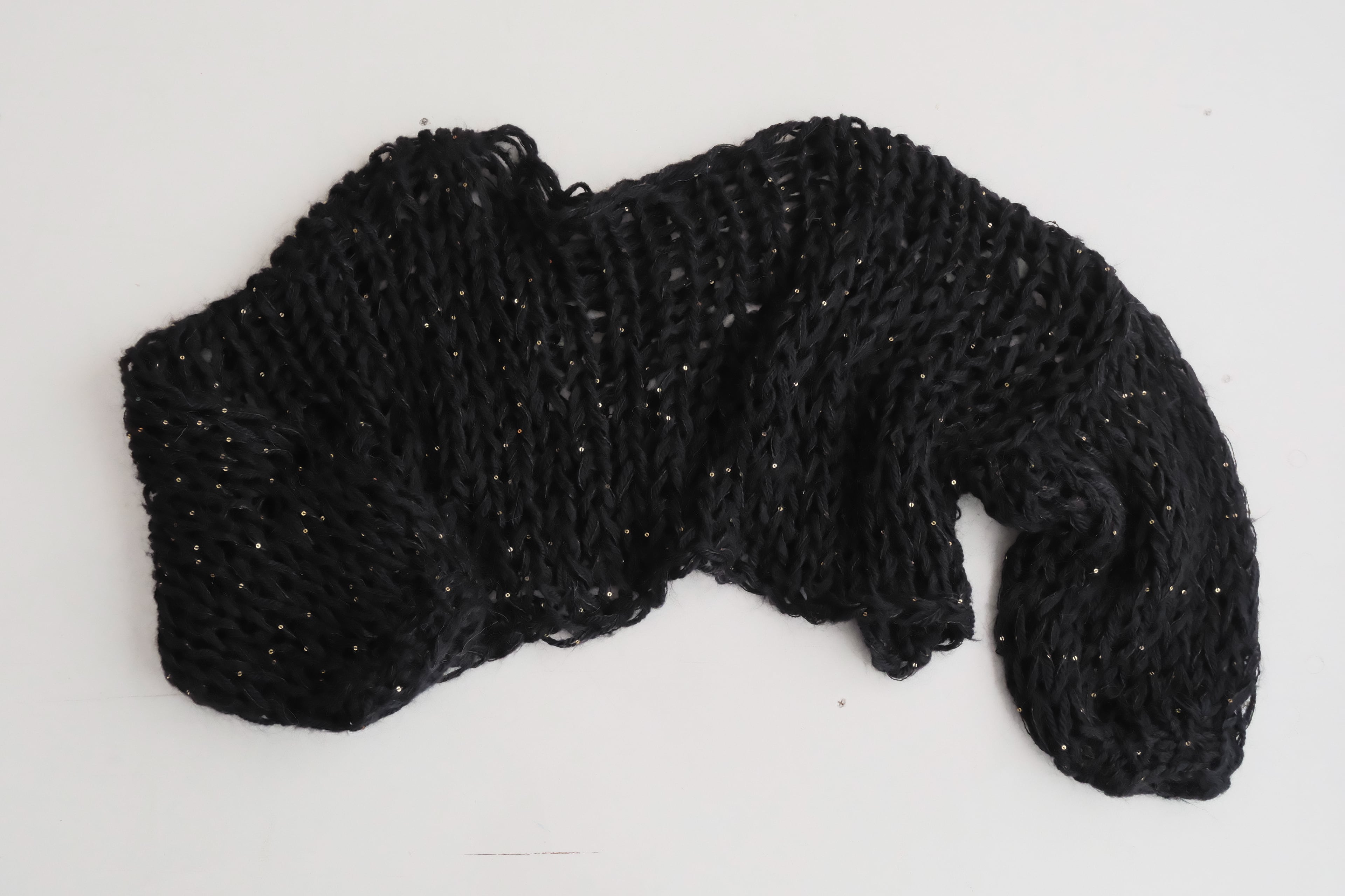 特にミックス毛糸でシースルーに仕上げている商品では、仕上げの際に糸端の処理をしていても着用中に糸端が表にでることがあります。質感の一部としてお楽しみ頂ける方のみご購入ください。